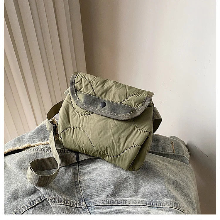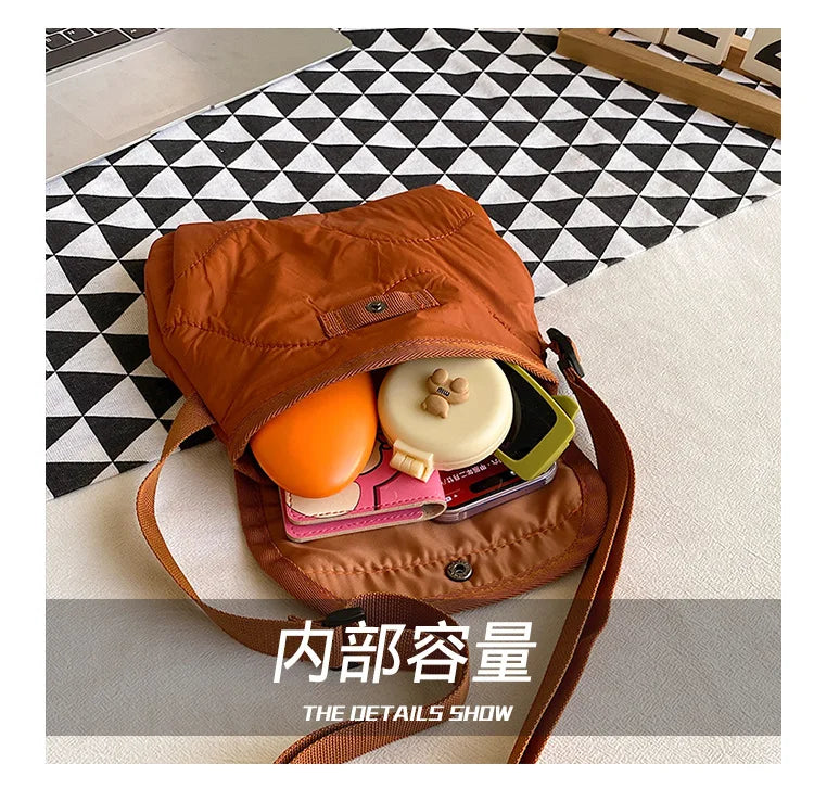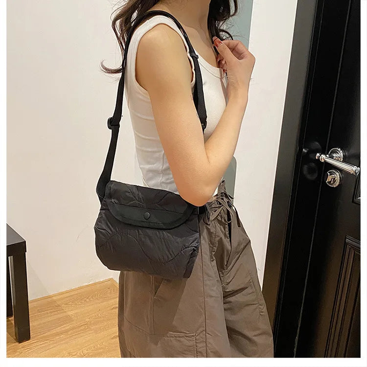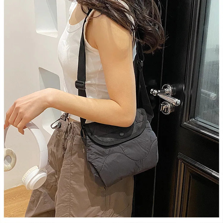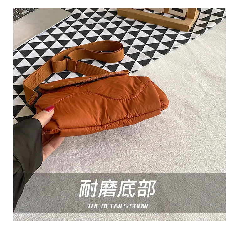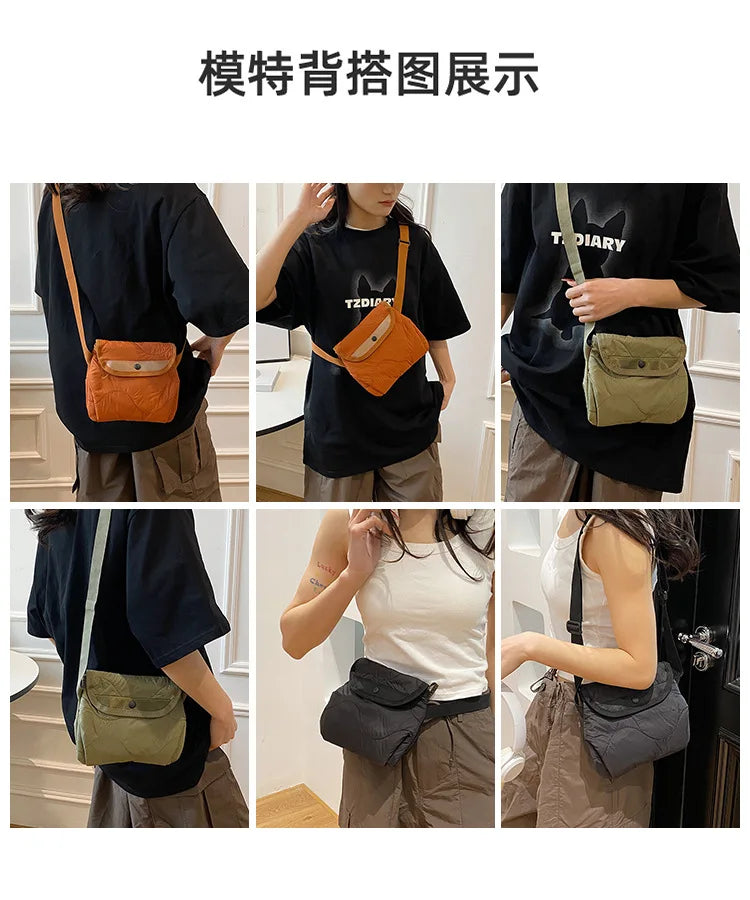 1. Elevate your spring wardrobe with our early spring new style nylon stitched embroidered shoulder bag. This versatile lazy wind bag is the perfect accessory for the fashion-forward female.