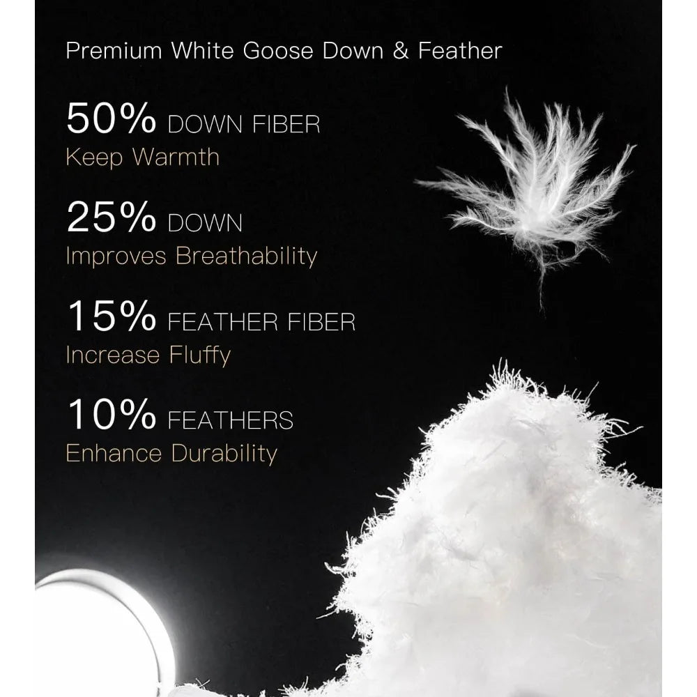 • PREMIUM FILLING: Luxuriously filled with a blend of white goose down, goose feathers, and top-grade down silk, offering a superior comfort compared to the common gray duck down. Experience unparalleled warmth and softness with every use.