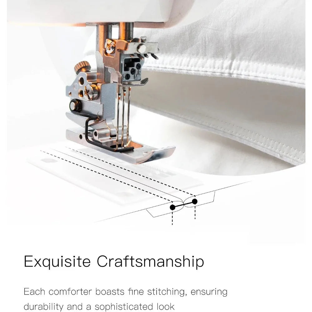 • EXQUISTIE CRAFTSMANSHIP: Each comforter boasts fine stitching, ensuring durability and a sophisticated look. The attention to detail in our stitching not only enhances the appearance but also prevents any shifting of the filling inside.
