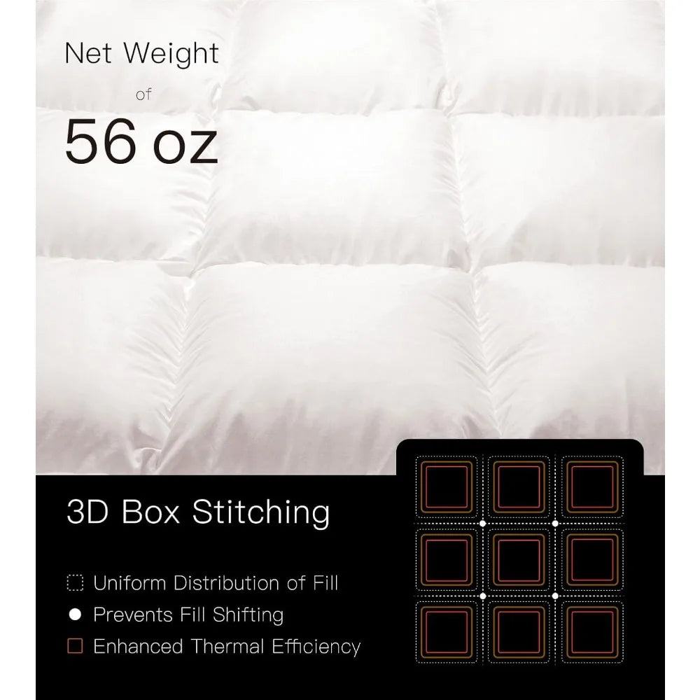 Luxury Goose Down Comforter King Size, All Season Fluffy Duvet Insert, 750 Fill Power, Soft Cotton Fabric, 56oz Medium Weight