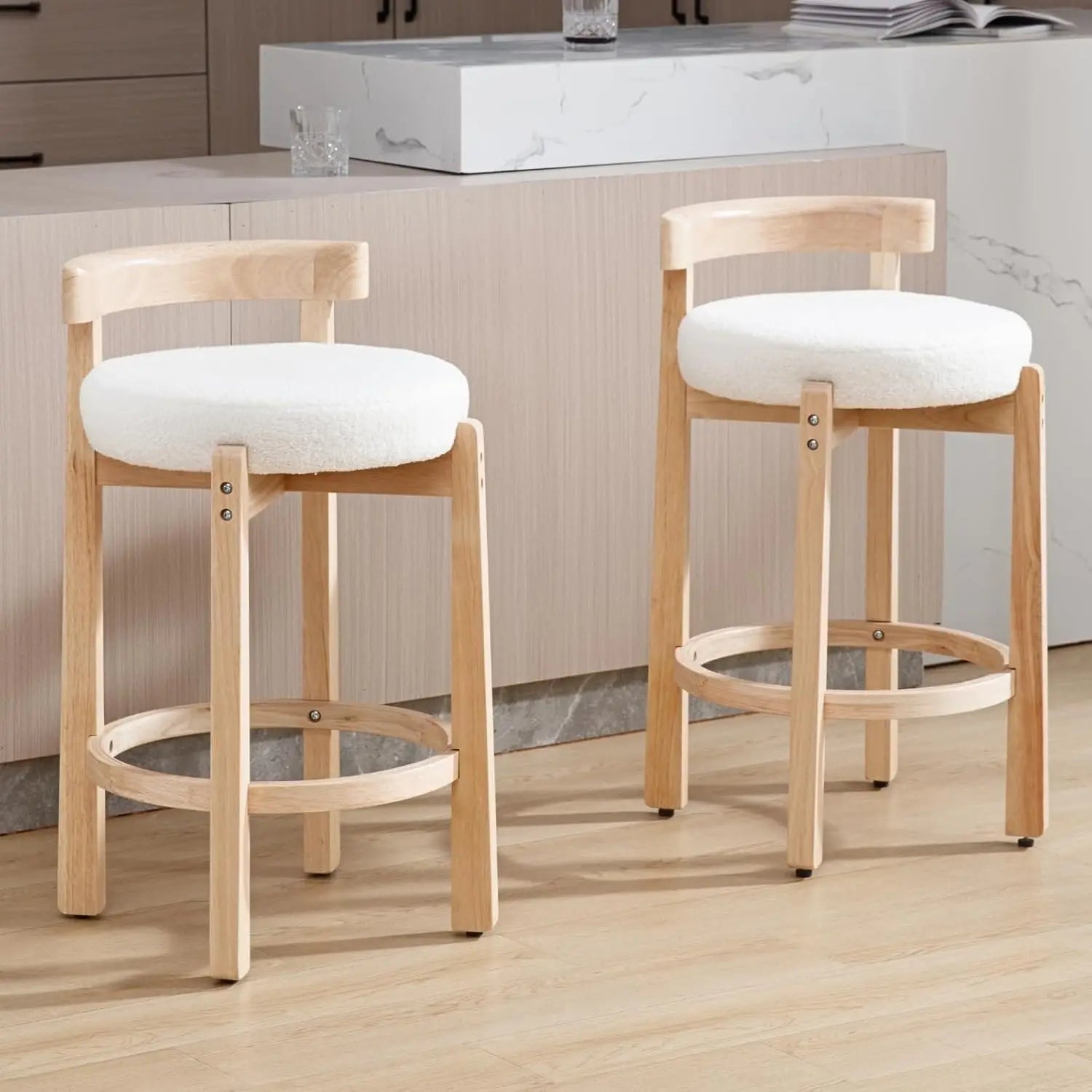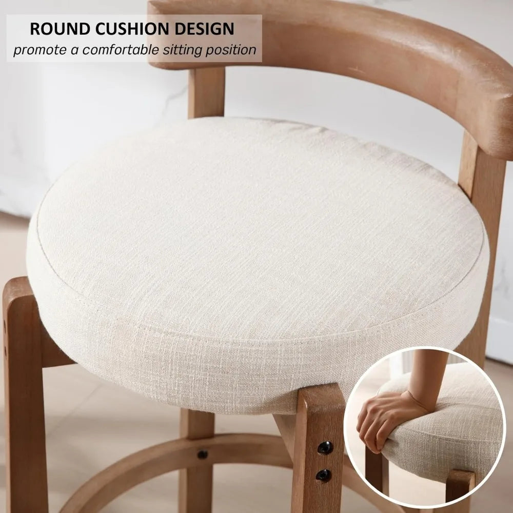 Mid Century Modern Bar Stools Set of 2, Counter Stools with Back, Linen Upholstered Barstools with Solid Wood Legs Bar Chairs