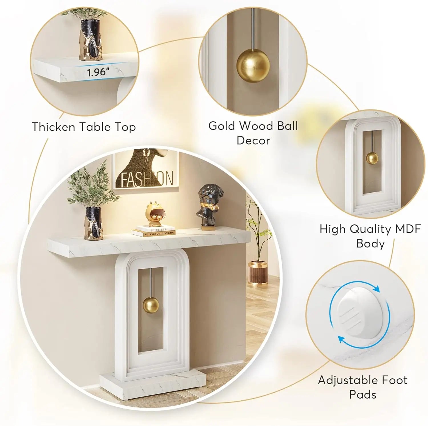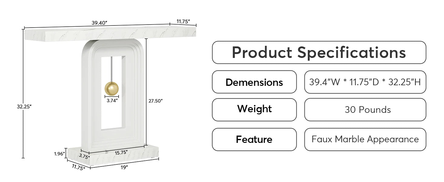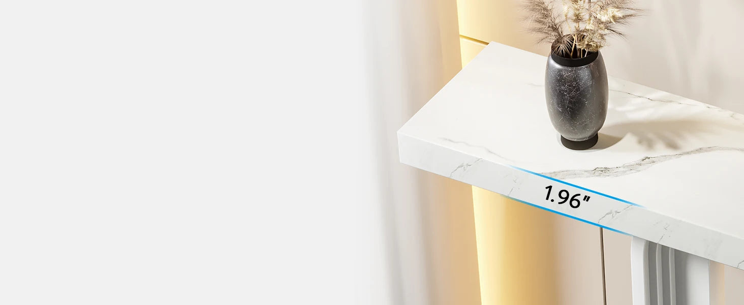 Crafted with utmost precision, the Modern Console Table offers a beautiful mix of form and function. The table top is made from scratch-resistant Faux Marble, which not only looks exquisite but is also highly durable.