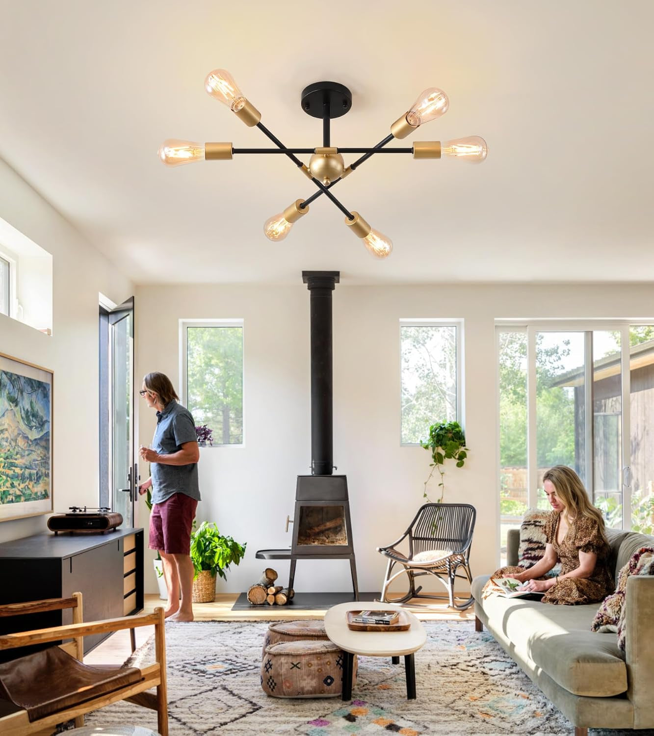 Transform your living space with the sophisticated charm of the Elegant 6-Light Black and Gold Sputnik Ceiling Fixture. Experience the perfect blend of style and functionality today!