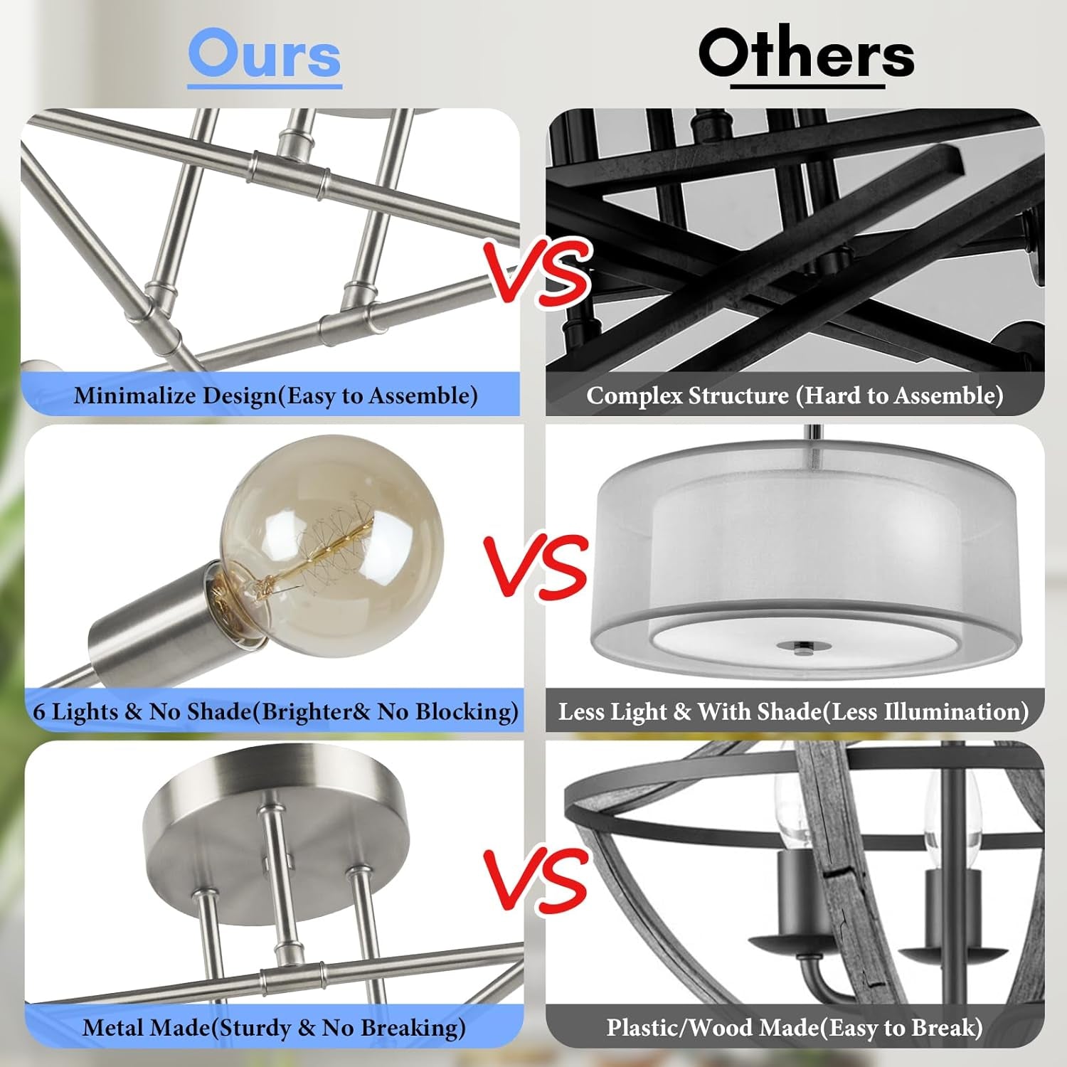 This Stylish 6-Light Brushed Nickel Sputnik Chandelier is the perfect addition to your home decor, combining modern and retro elements for a unique look. Featuring a semi-flush mount design, it creates a comfortable and inviting ambiance in any space. Ideal for various settings, this chandelier enhances the aesthetic of your bedroom, dining room, living room, hallway, kitchen, beauty salon, bar, or coffee house.