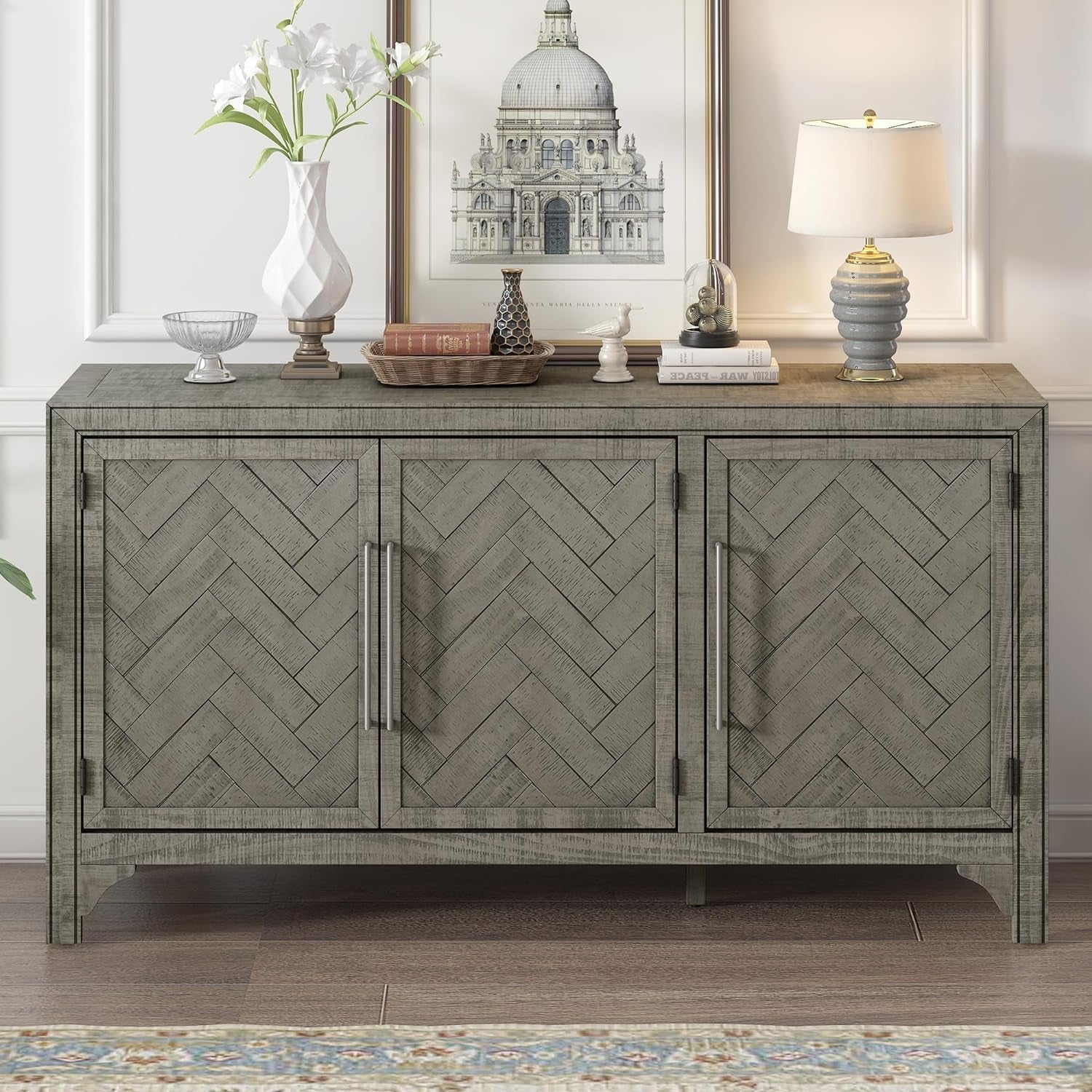Enhance your home decor with this Stylish Gray Farmhouse Buffet Cabinet, designed to blend modern elegance with classic charm. Crafted with a beautiful pine veneer finish and supported by sturdy table legs, this versatile sideboard is perfect for any room in your home.