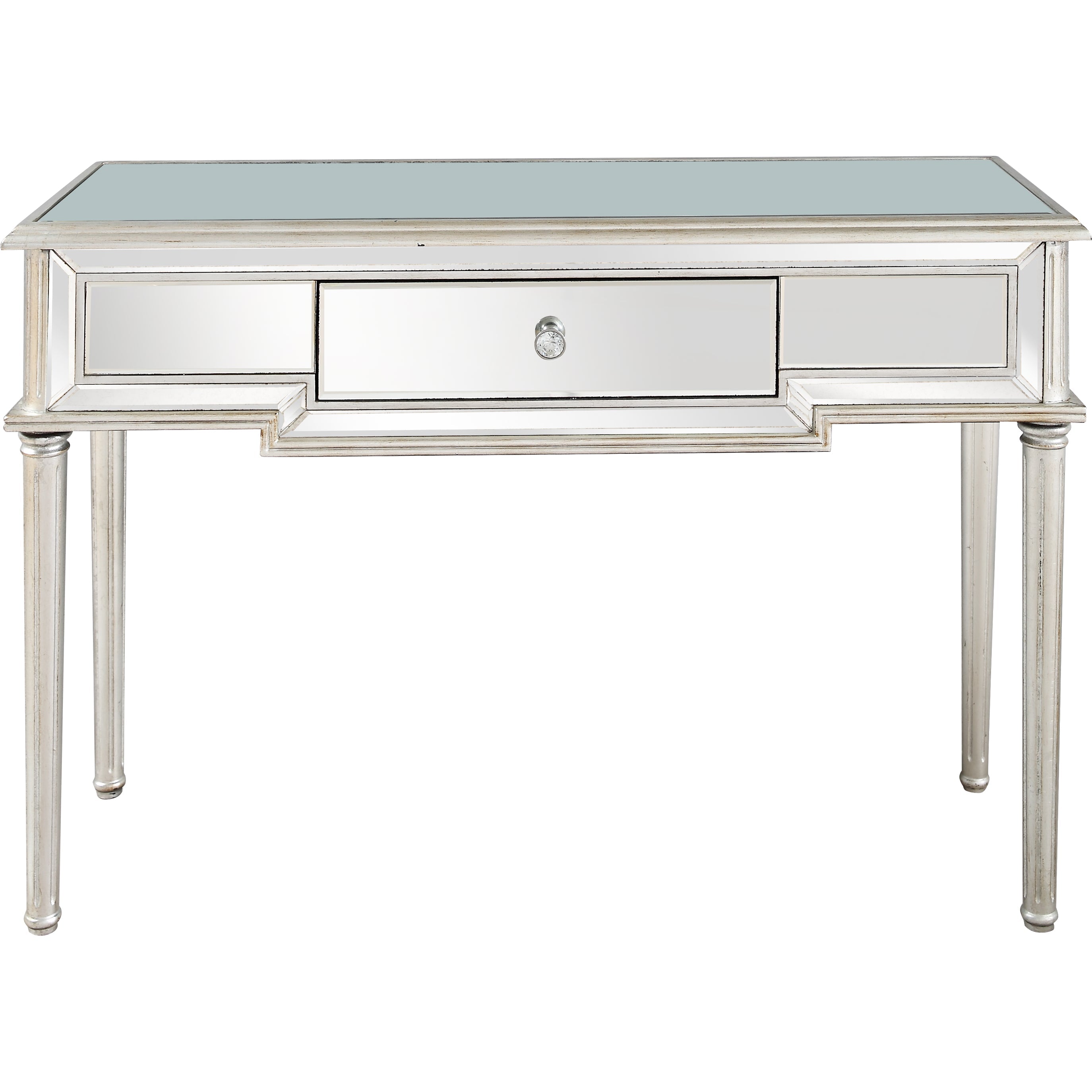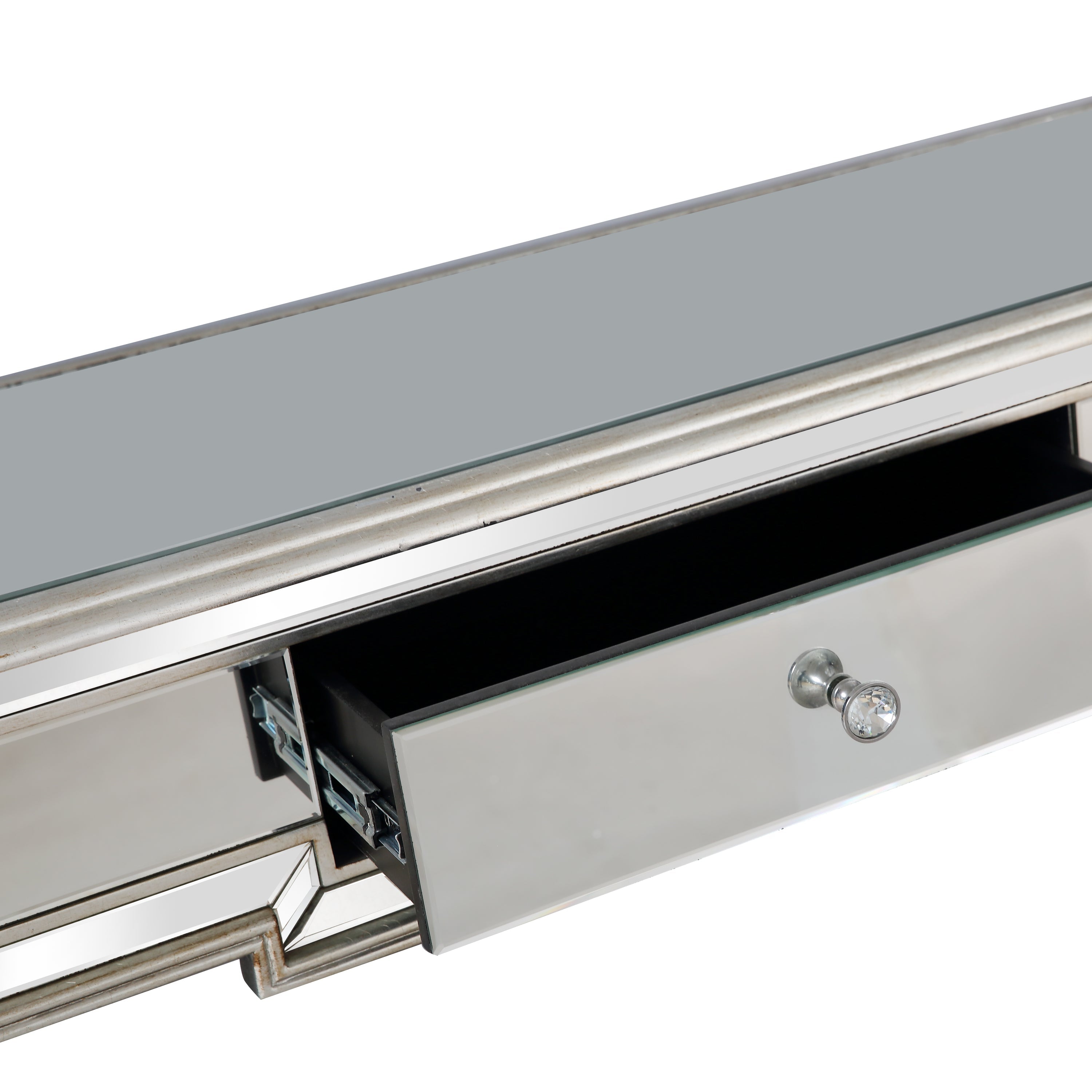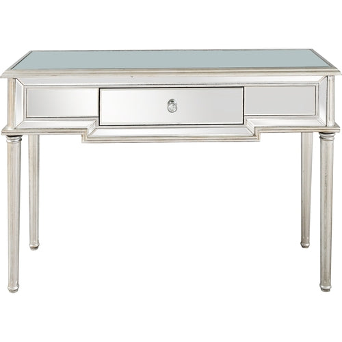 If your hallway or foyer needs an elegant finishing touch, the Morgan Mirror Console is what you need to create a timeless look. The console features a combination of both clear and antique mirrors, making it a perfect decoration piece for any living space. The regal crystal knob and silver leaf with light antique finish give it a stylish appearance that blends seamlessly with modern or classic interior designs. The Morgan Beveled Accent Mirror instantly creates an illusion of space with its rectangular shape and silver leaf finish. Clean and elegant, this well-made mirror features antique mirror strips along its borders that complement both modern and traditional interior designs. When paired with a lovely wall painting, this mirror adds an entirely new touch to your room. Beveled 31.2 x 44 mirror has a high quality silver backing. Ready to hang either vertically or horizontally with pre-attached hanging mounts.