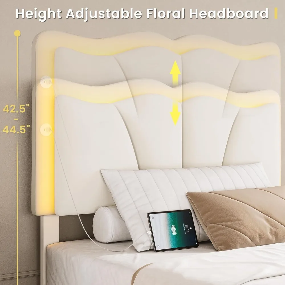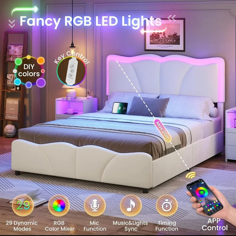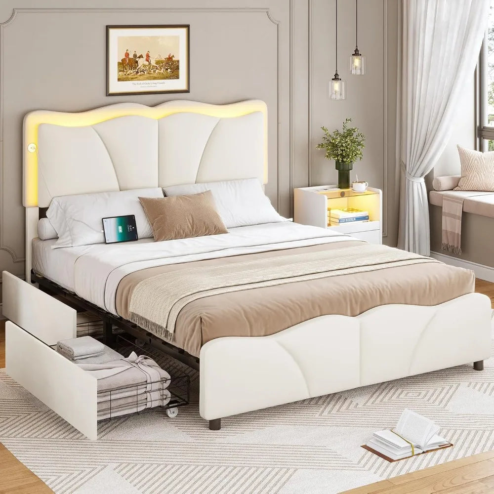 Special Feature: No Box Spring Needed 4 Storage Drawers LED Lights Height