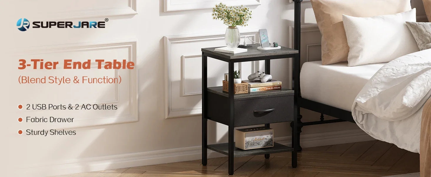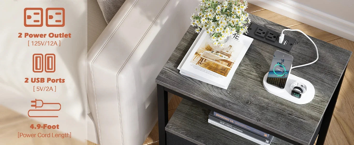 Adjustable feet keep this end table stable even on uneven floors and avoid floor scratches.