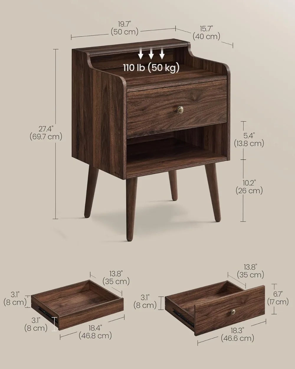 • 【MID-CENTURY APPEAL】These bedside tables feature clean lines with a retro hue and unique angled legs, adding a touch of mid-century charm to your bedroom or living room