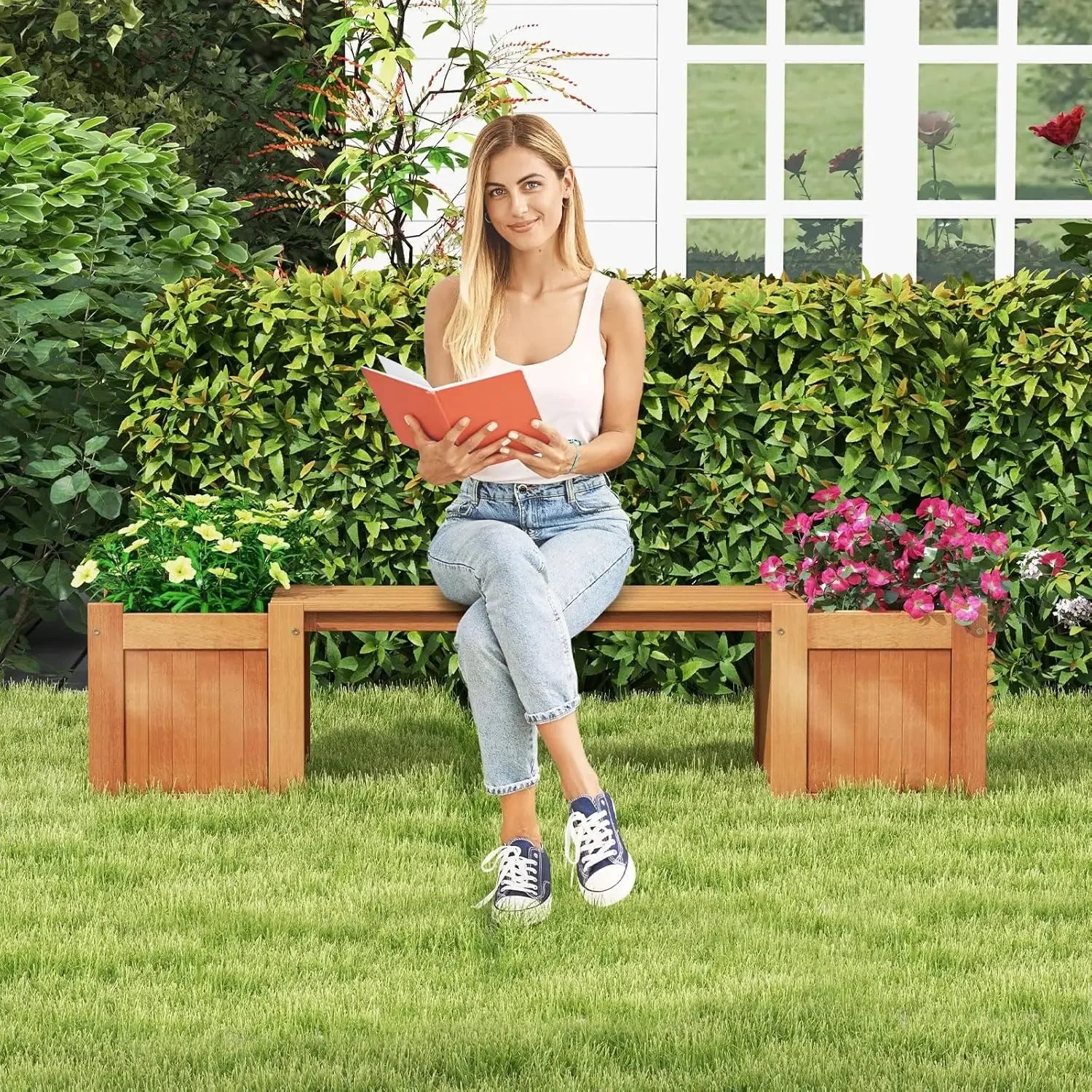 • [Customizable for Multiple Scenarios]: The wood planting bed with seat comes with a DIY design, allowing you to arrange multiple planters together to create a stunning garden display that reflects your style. And the planter features natural appearance to embellish your garden, deck, balcony, porch.