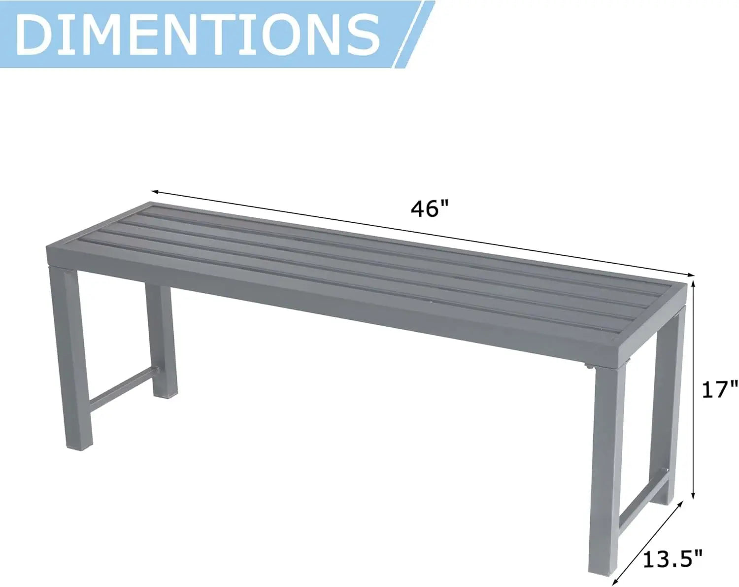 • 【Dimension】This dining bench measures 46"W x 13.5"D x 17"H, suitable for outdoor spaces like yards, poolside areas, balconies, gardens, and porches