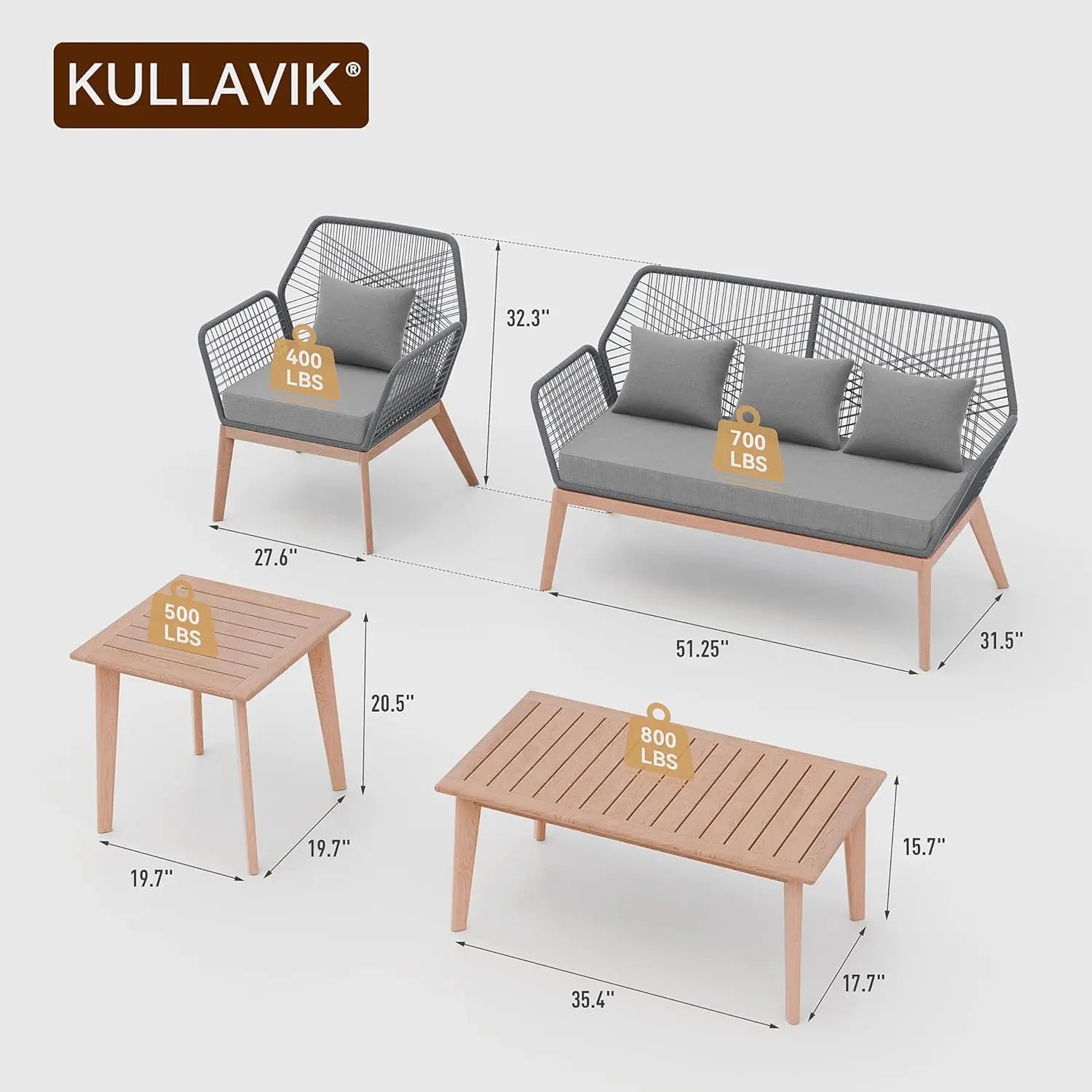 Easier Assembly:The Kullavik patio conversation set includes 1 double seat sofa,2 single seat sofas,1 long coffee table and a square coffee table.This outdoor sofa set comes with 2 boxes containing different accessories and instructions,just follow the instructions for easy assembly.