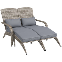 Our two-person Adirondack fire pit chair is great for sitting with your favorite friend and watching the sunset. It offers enough room for two and has a classic, handwoven look. This double Adirondack includes a galvanized steel frame with a powder-coated finish and wrapped in PE rattan to help it hold up to the elements. Soft padded seat and back cushions provide a plush place to sit, and ottomans let each person put their feet up. Get out, get comfy, get Outsunny.