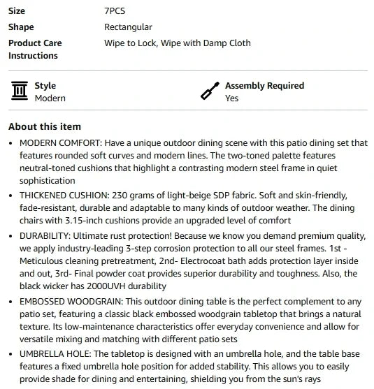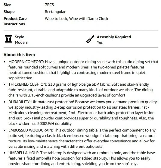 Chair Color; | Black Wicker + Light-Beige Cushion |