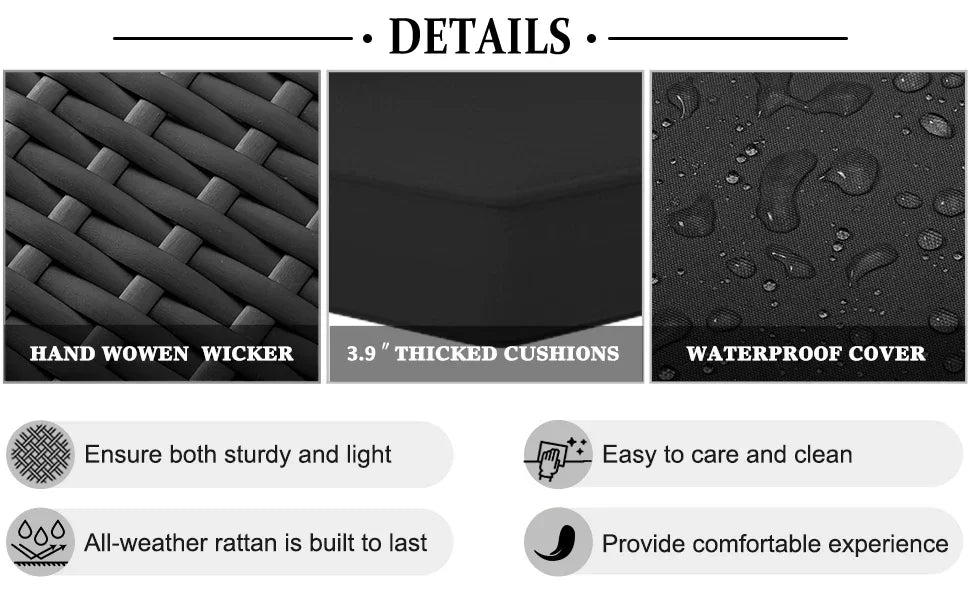--Premium and the most durable rattan material that resists fading, sagging, and cracking.