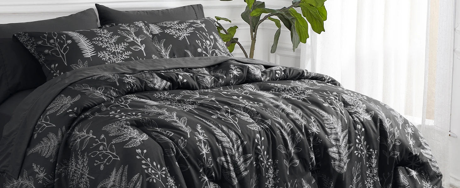 Botanical prints add elegance to your bedroom, and solid colors give you simple & classic style.