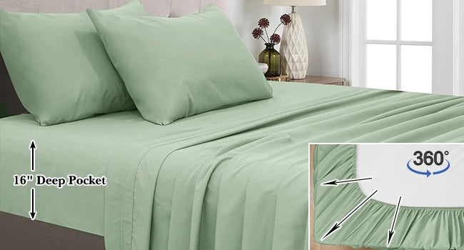 Our premium fitted sheet with deep pocket can stretches up to 16 inches, pull snugly over any mattress up to 16 inches effortlessly and simply. Each fitted sheet has full encased elastic band covered with self-fabric at the bottom, can fit your bed mattress snugly and safely without any shifting.