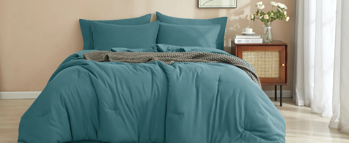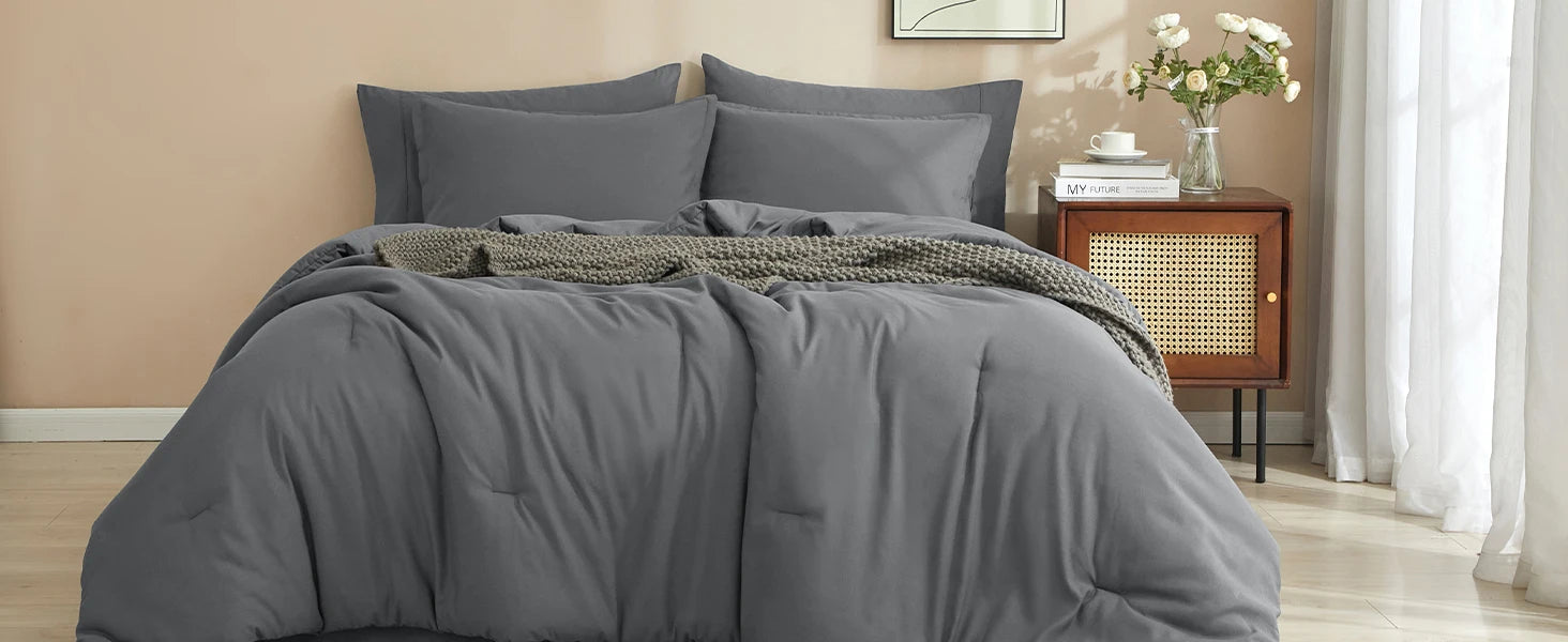 Our comforter features a surface crafted from premium synthetic fiber material that combines long-lasting durability with silky softness and excellent breathability.