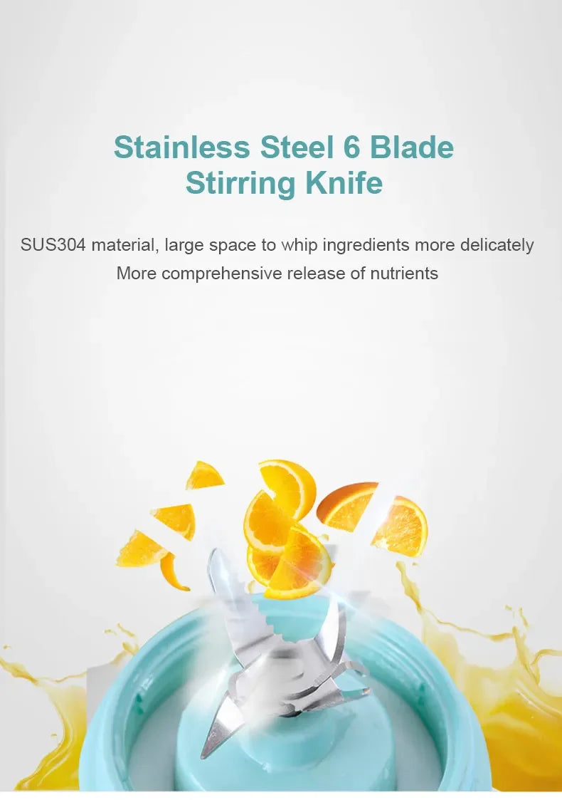 6. 7.4V large motor, 6-leaf shark-tooth blade, instant crushing of ingredients.