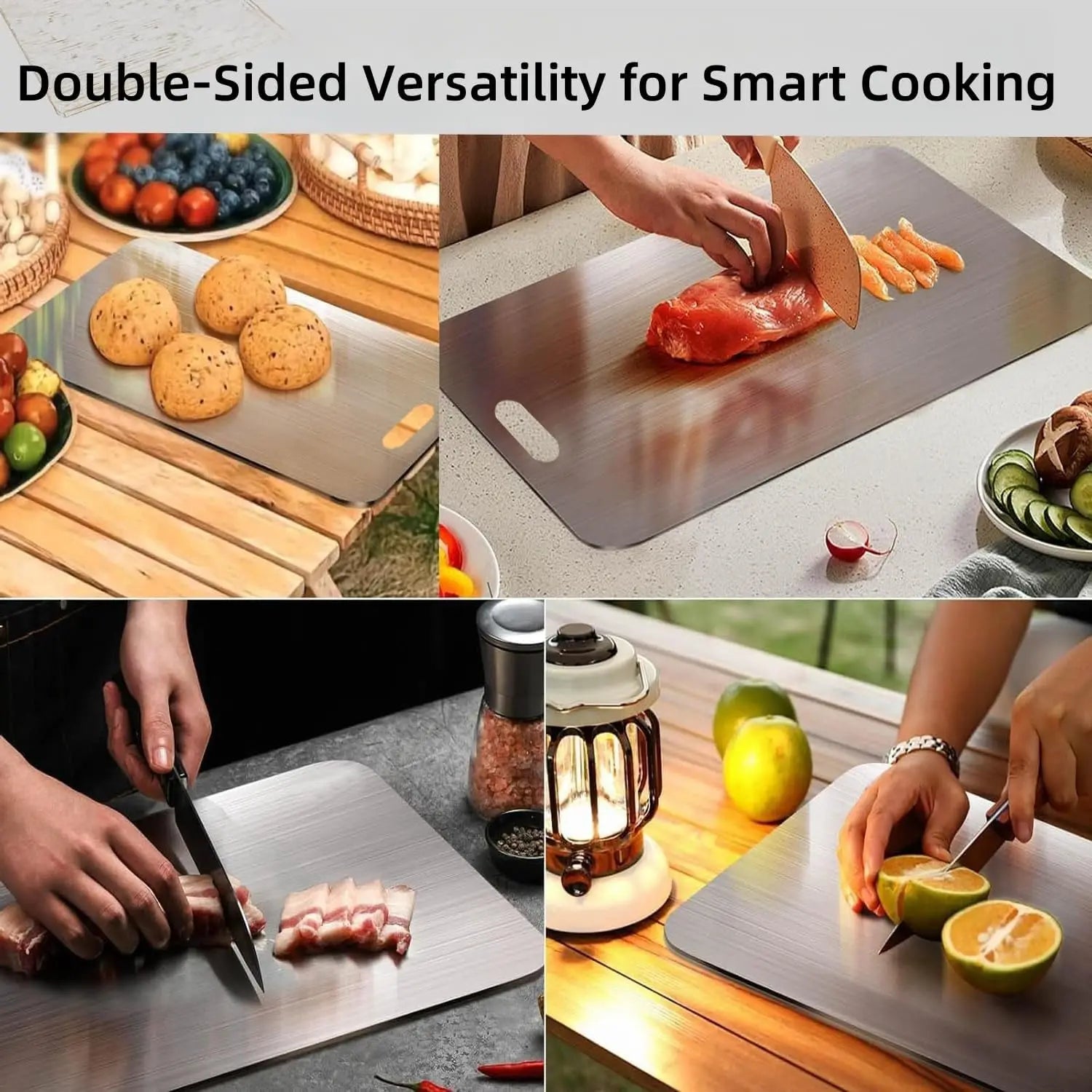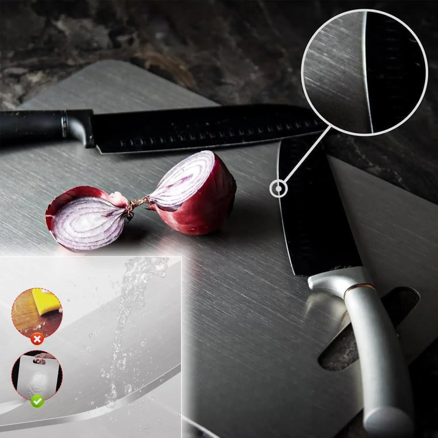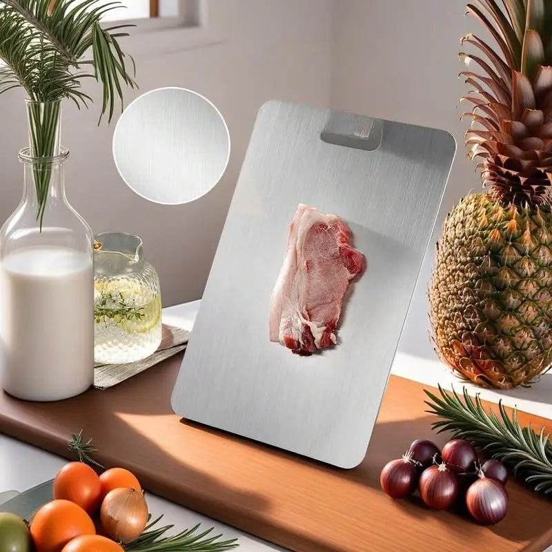 HEALTH-CERTIFIED TITANIUM SURFACE FOR SAFE FOOD PREP: Made with medical-grade titanium, it's perfect for safely cutting meats, fruits, and vegetables.