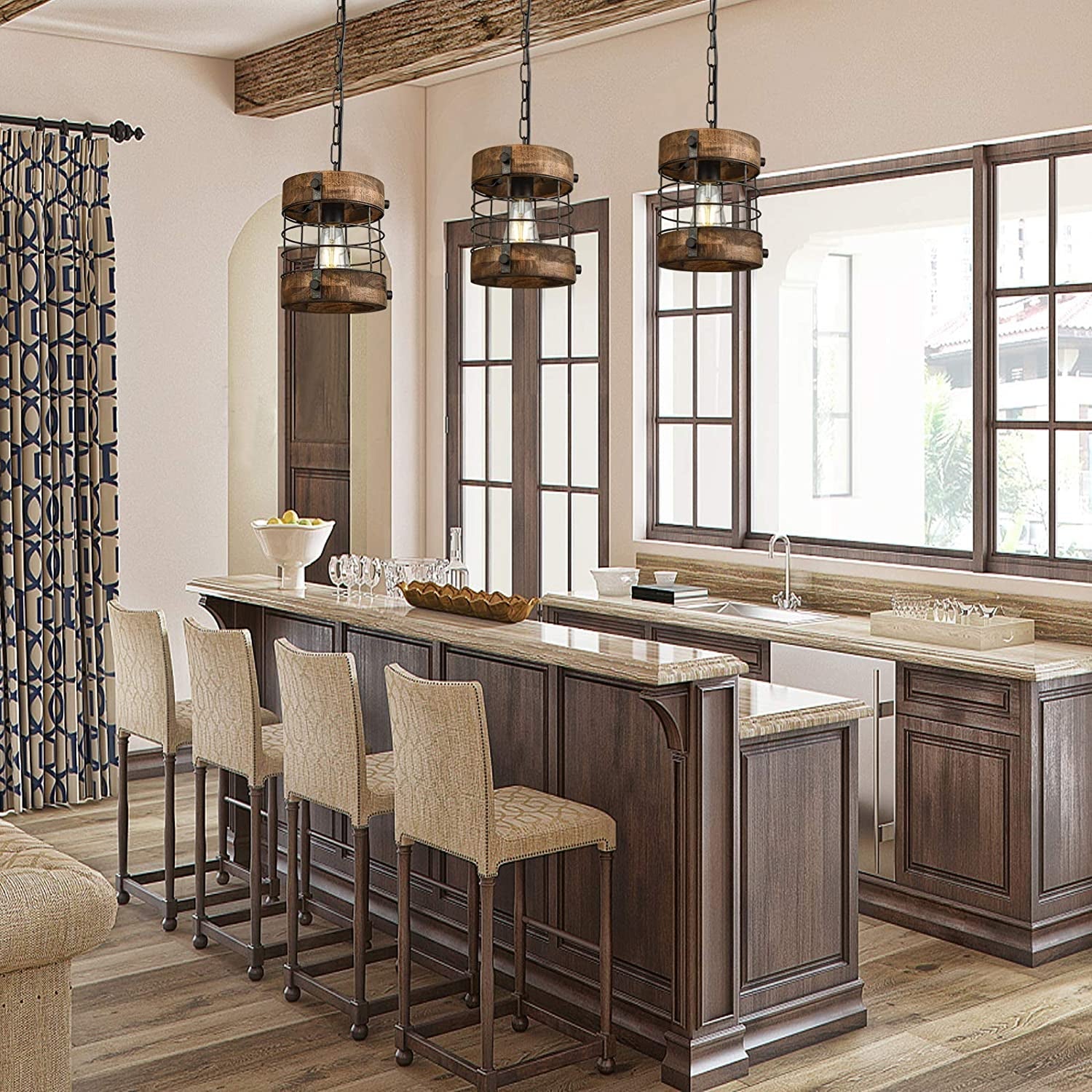 Illuminate your space with the stunning WOCHOS Rustic Wood and Metal Round Chandelier Pendant Light. This exquisite fixture features a retro industrial design that beautifully combines metal and wood elements, making it the perfect addition to any room in your home or business. Whether it's for your kitchen, dining room, foyer, or bar, this chandelier will elevate the ambiance with its rustic farmhouse style.