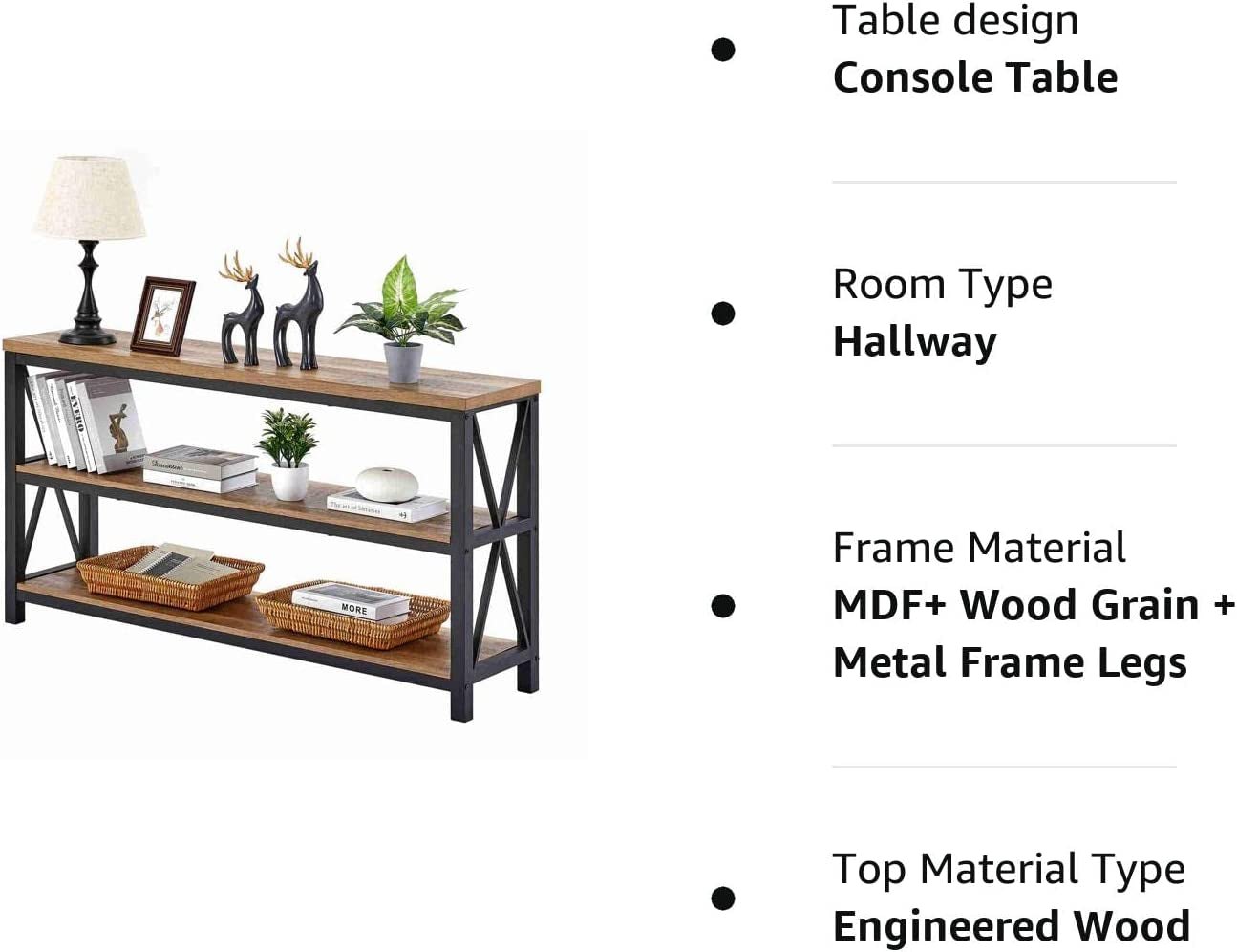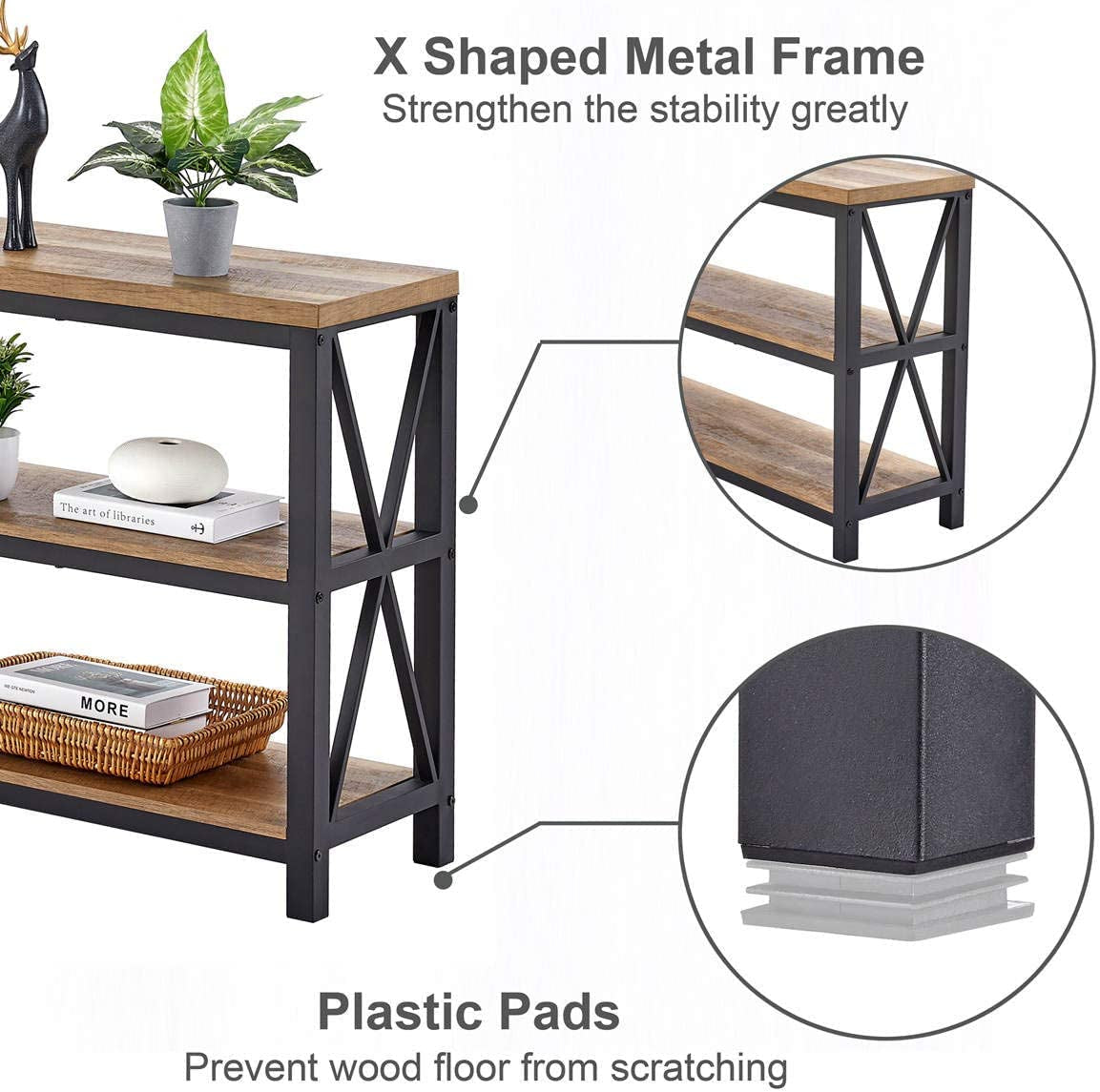 Multipurpose Sofa TableMultipurpose design make this sofa table perfect for placing in any space. Can be used as TV stand, entryway table, behind sofa table, long bookshelf, etc. | Heavy Duty Metal X-Frame LegMetal X-frame sides offer a rustic complement while reinforce the constructions greatly. | Rustic Wood Grain FinishRustic wooden style lending a touch of industrial-chic look and classic beauty to your space, creating a welcoming atmosphere in your entryway. |