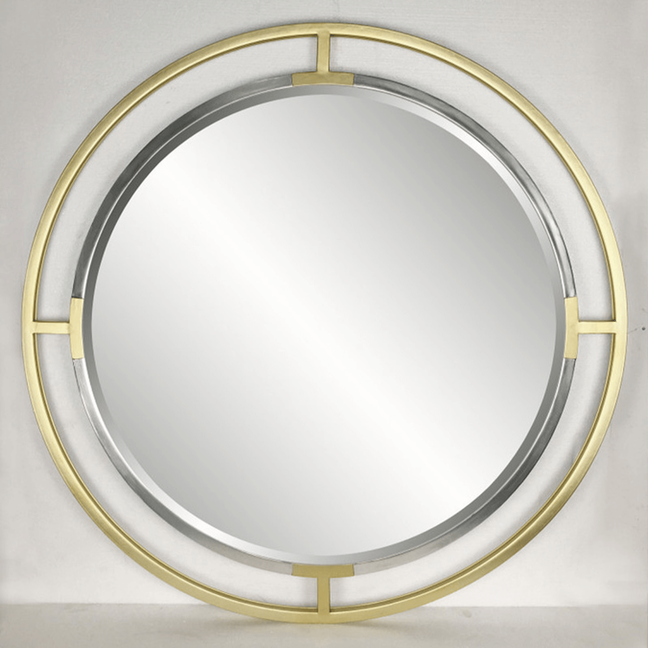 Crafted with meticulous attention to detail, the mirror features a robust 5mm MDF backboard and showcases a striking two-tone frame detailing. The outer frame is elegantly hand-painted in a rich gold hue, while the inner rim is adorned with a sophisticated silver finish. This harmonious blend of colors