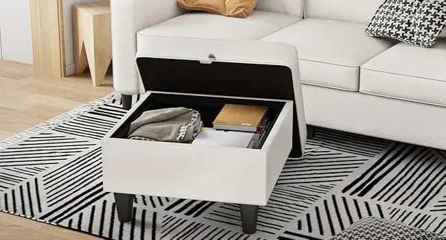 The ottoman can be placed left or right to form reversible sofa, can also be used as a storage box alone. Convenient for you to store remote controls, magazines or other small items.