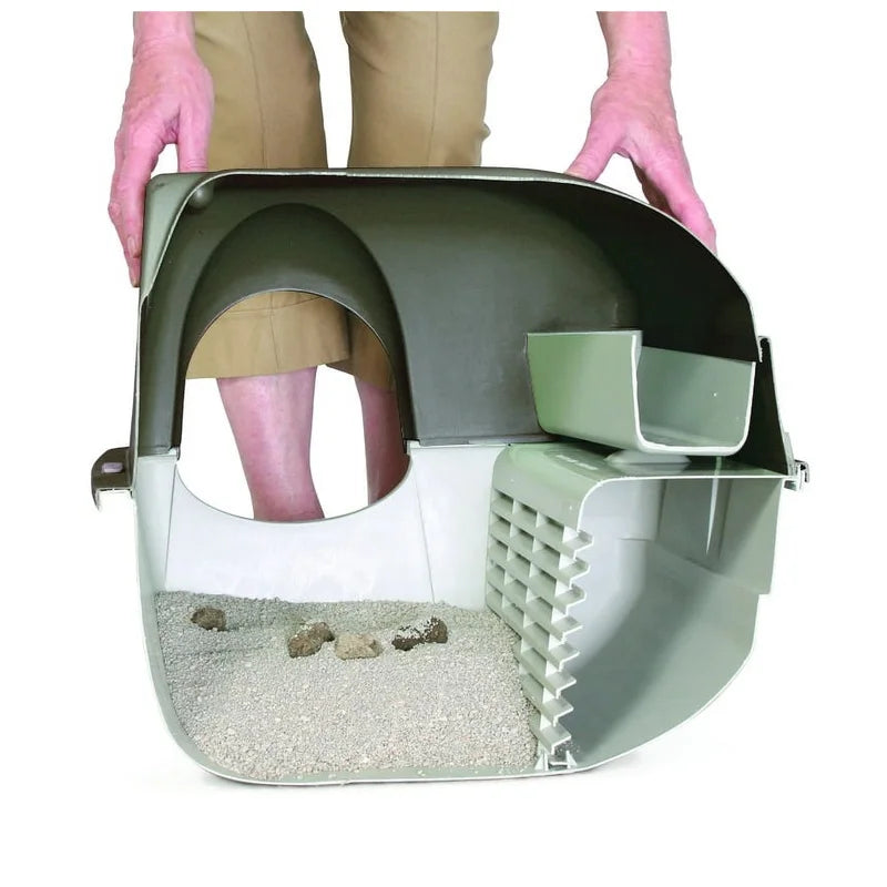 Self cleaning. Easy to use. Saves litter. Less dust. Patented grill.