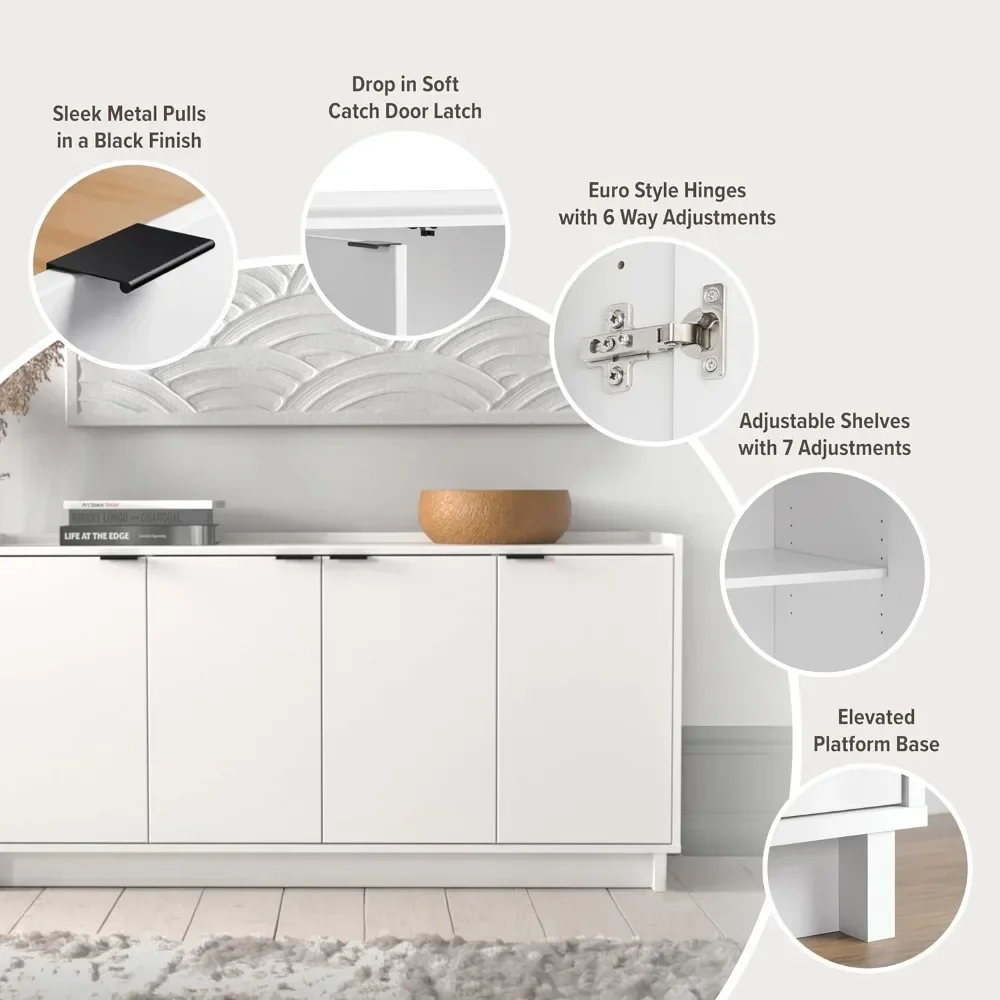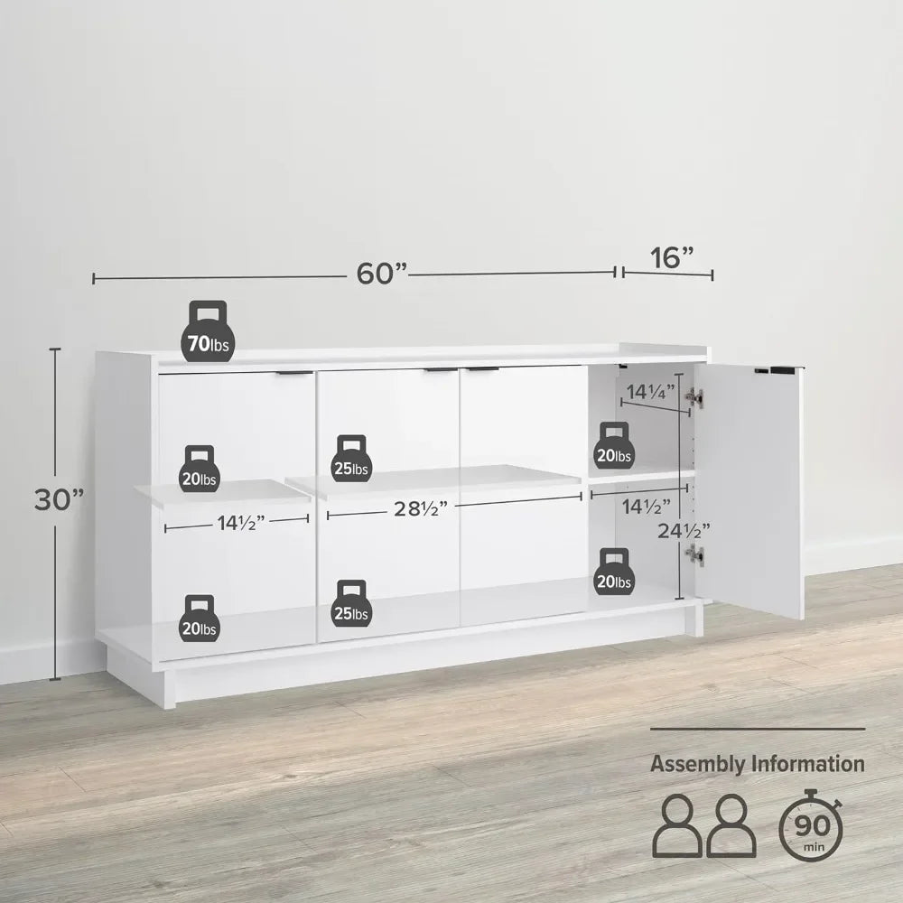 Sideboard Storage Cabinet Cabinets for Living Room Furniture for Kitchen Simply Modern 4 Console Table White Doors and Shelves