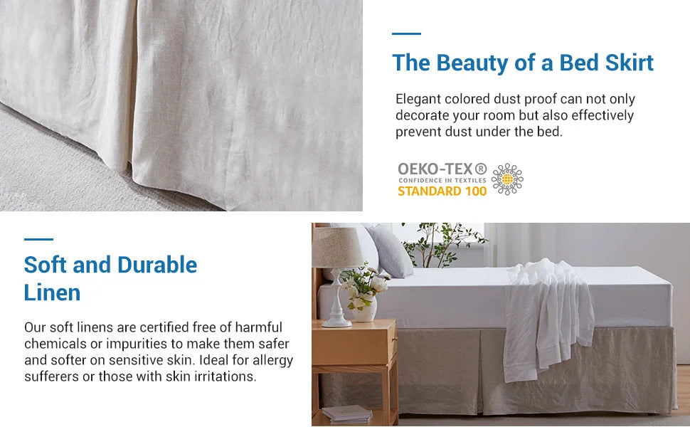 Material--Bed Skirt Drop: 100% Belgian LINEN fabric, Platform: 100% Cotton. Comfortable, breathable. Different batches may have some color difference. Note: Only include 1 bed skirt.