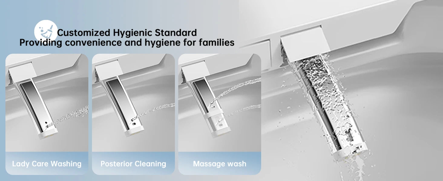 275NM wave nozzle self-cleaning of smart toilet providing efficent and standard hygiene for your families after each using.