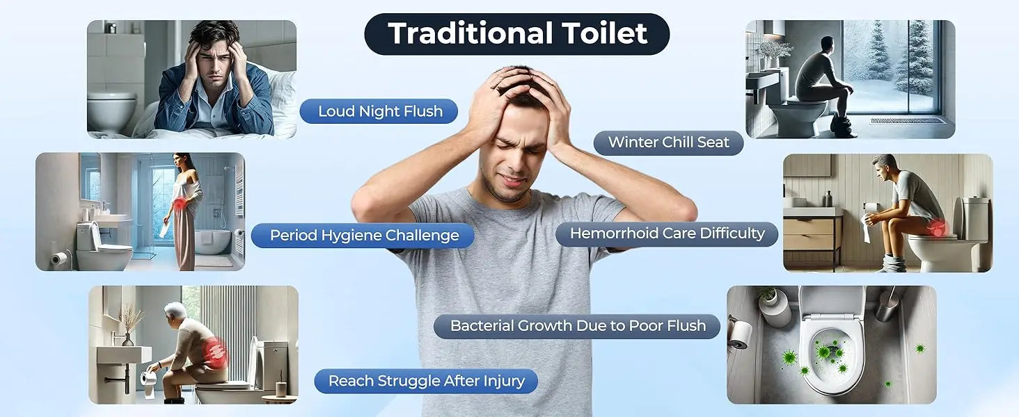 Equipped with a backup battery box; supports flushing during power outages; ensures continuous convenience and peace of mind