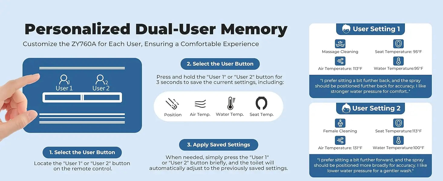 The toilet lid automatically opens when the user approaches the toilet. The seat and lid automatically close 2 minutes after the user leaves the toilet's sensor range. Press and hold the Dryer button on the remote control for 5 seconds to turn this function on or off.