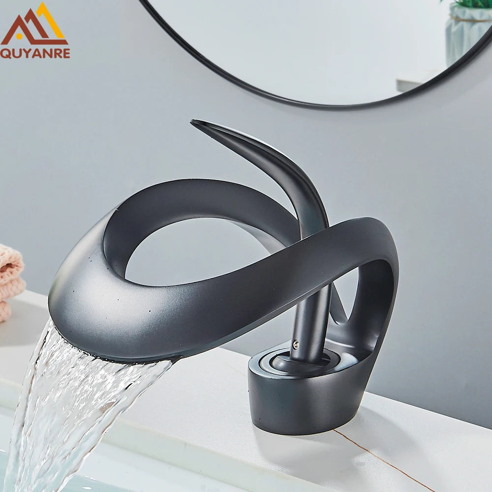 Model Number: Quyanre Black Chrome Waterfall Basin Faucets Spout
