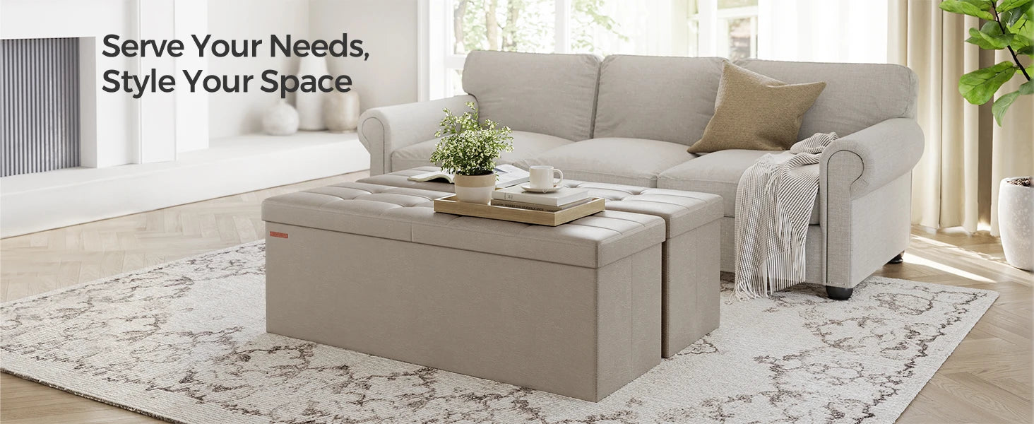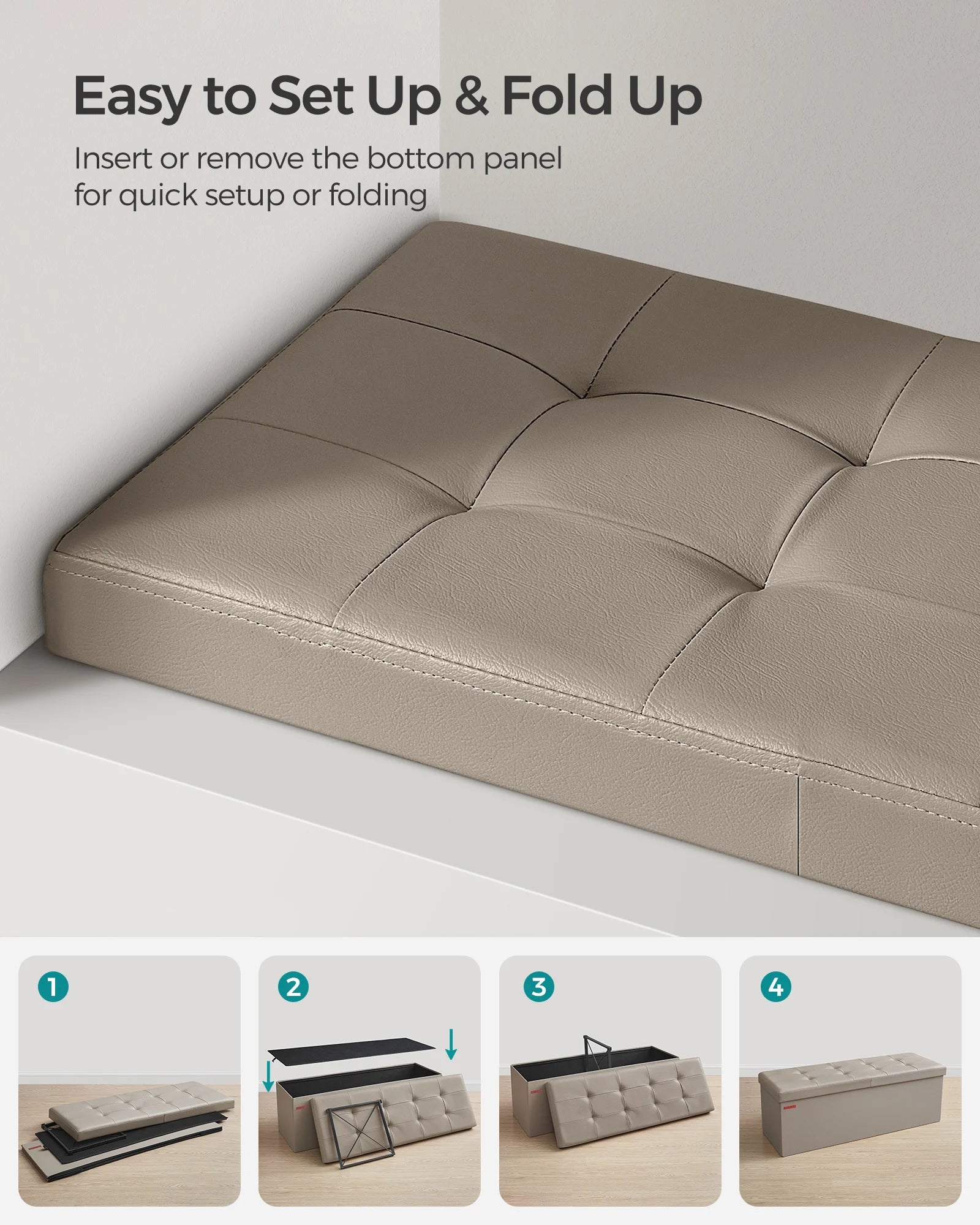 [Quick to Set, Easy to Get] Set up or fold away our storage ottoman in a snap, just insert or remove the bottom panel. And with the convenient flipping lid, you'll have effortless access to all your stored items