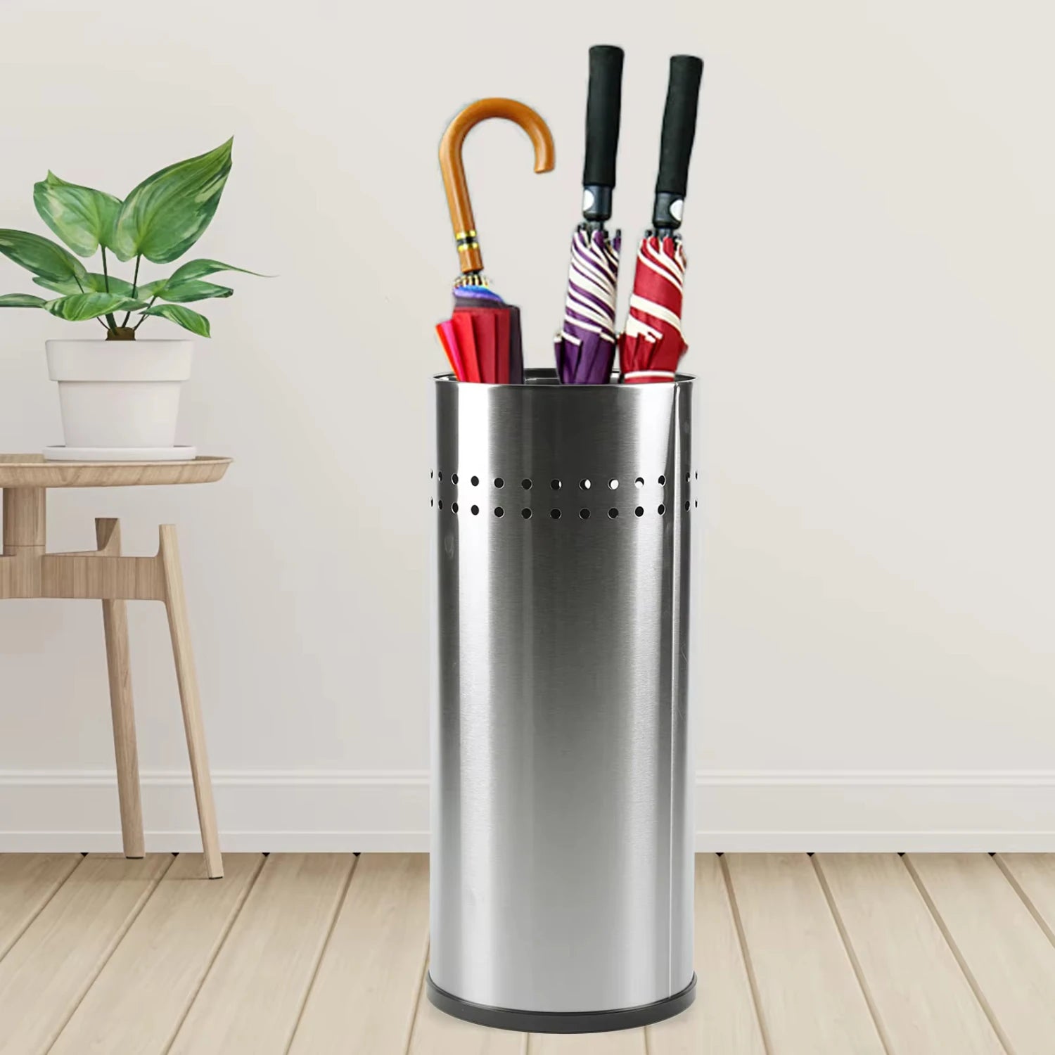1. Keep your entryway organized and stylish with this sleek Stainless Steel Umbrella Holder. Made of durable stainless steel, this modern umbrella container is a must-have for any home.