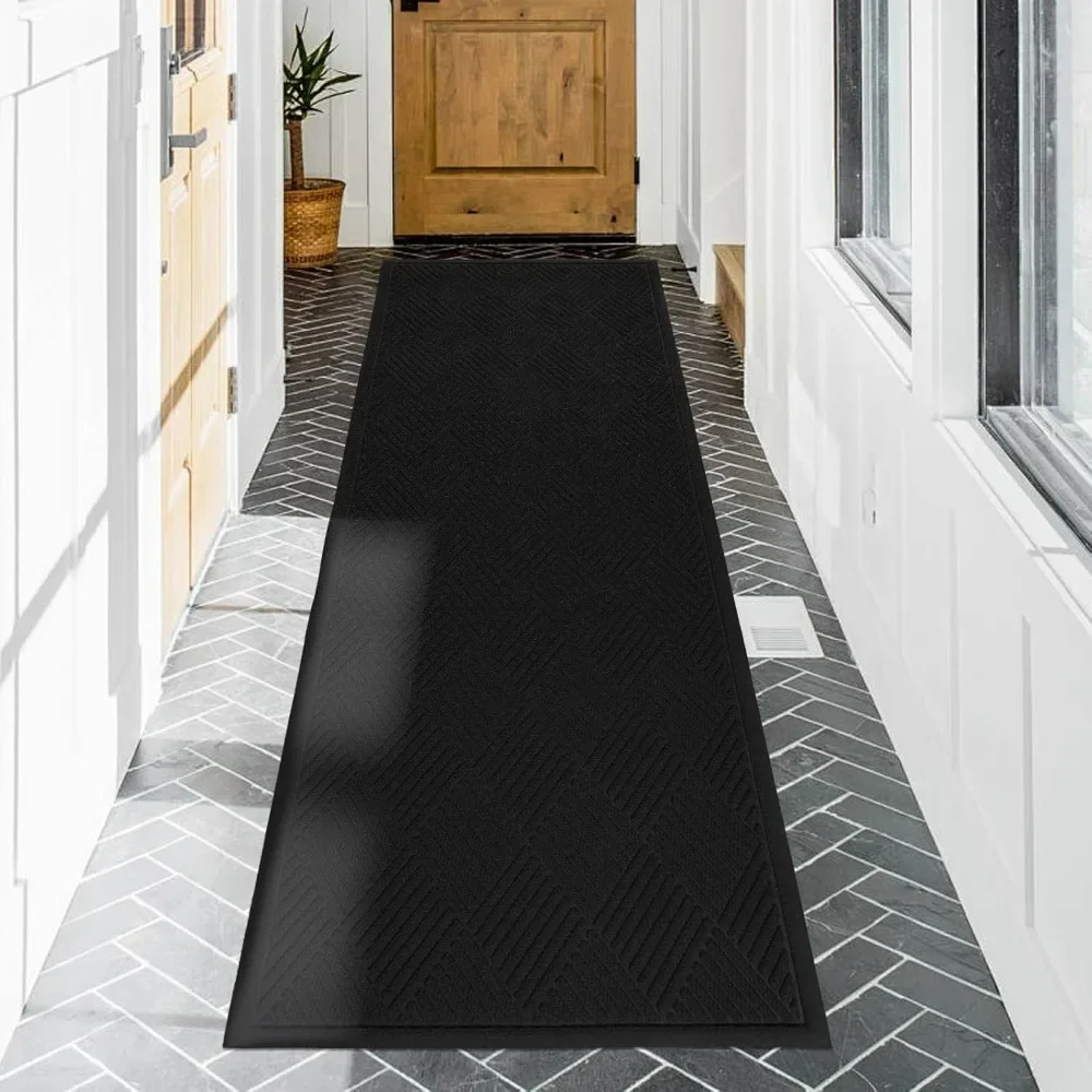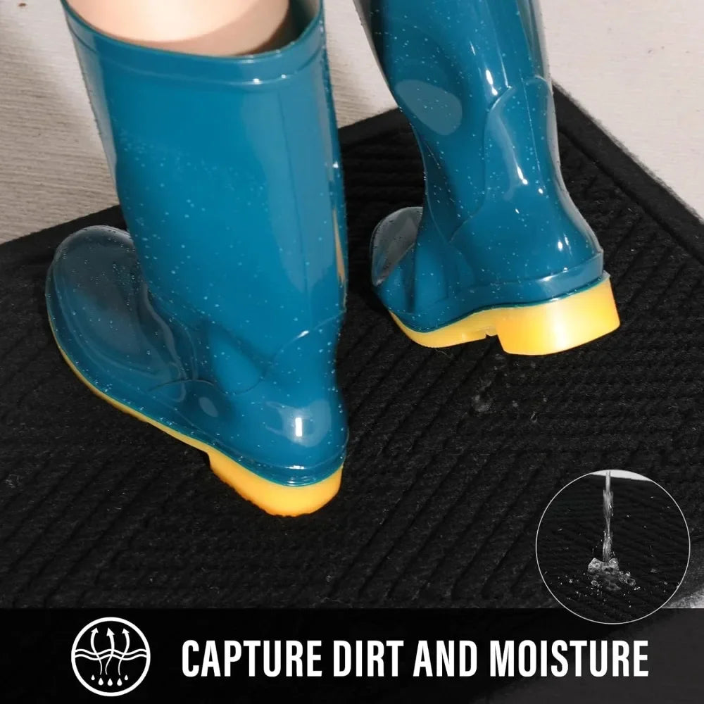 Capture Dirt and Moisture: Doormat super absorbent, The outdoor welcome mat holds up to 1.8 gallons of water per square yard. Deep groove design and rubber border helps capture water and prevents excess water from spilling onto the ground. Indoor door mat surface fibers scrape dust and debris from your shoes, boots, paws. Let the dirt stay out!