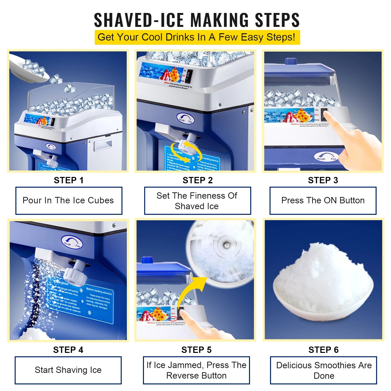 Adjust the ice fineness with a rotary knob to create light, fine, and various textured snowflakes, catering to all your favorite icy treats.