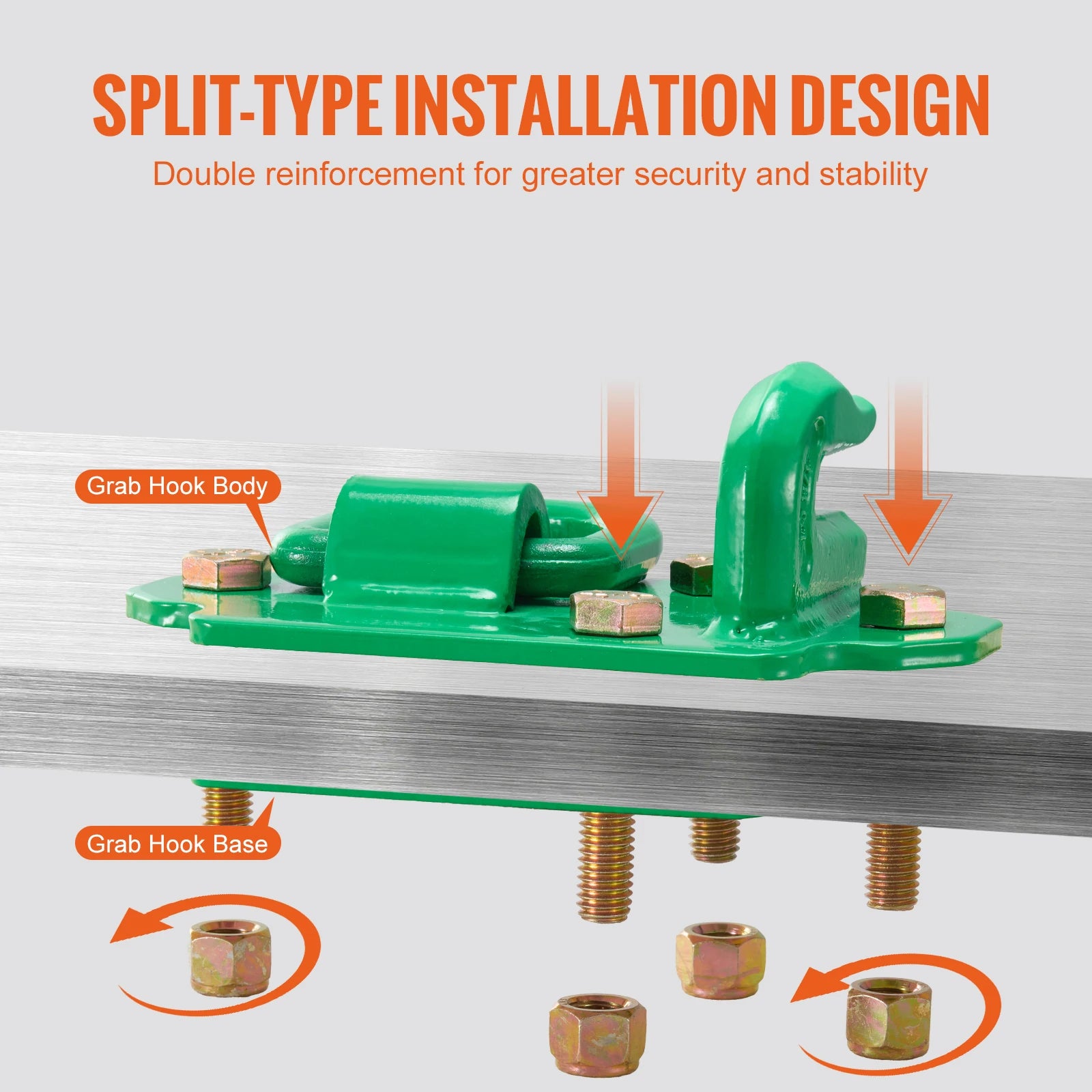 The bucket hooks have a top-and-bottom split structure that attaches the hook securely to the base. This design increases installation flexibility and reduces the risk of load drops during transportation, ensuring stability and reliability.