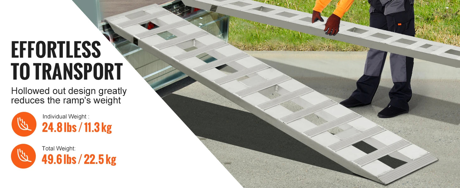 Lightweight & Easy to Transport: Despite its rugged build, the ramp weighs only 24.8 lbs (11.3 kg) per piece. Its compact design allows for hassle-free transportation and storage in your garage or truck.