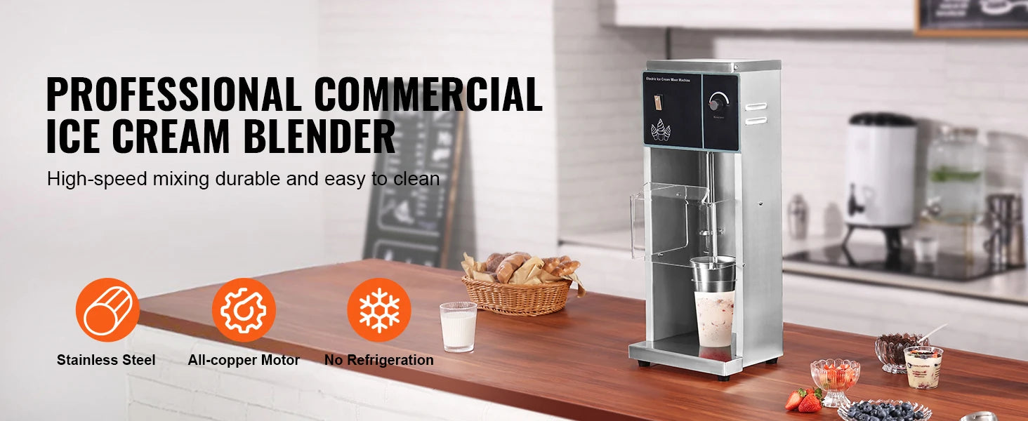 The SucceBuyS Ice Cream Blender is crafted for those who demand efficiency and durability in their ice cream preparation. Featuring a robust 304 stainless steel body and blending head, this blender delivers powerful, consistent performance that ensures smooth, uniform mixing every time. Its long-lasting construction makes it ideal for both professional and home use, while the simple, user-friendly design allows for easy operation and quick cleanup. Perfect for boosting productivity, this blender is a must-have tool for creating delicious, homemade ice cream with ease.