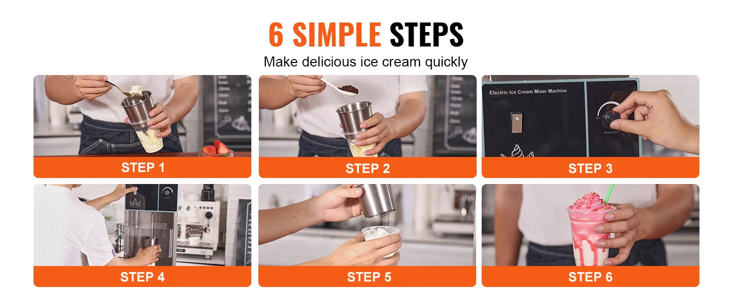 Crafted from high-quality 304 stainless steel, this ice cream blender’s body and blending head are built to last. The sturdy design ensures smooth, reliable operation while being easy to clean, thus boosting your overall efficiency and productivity.
