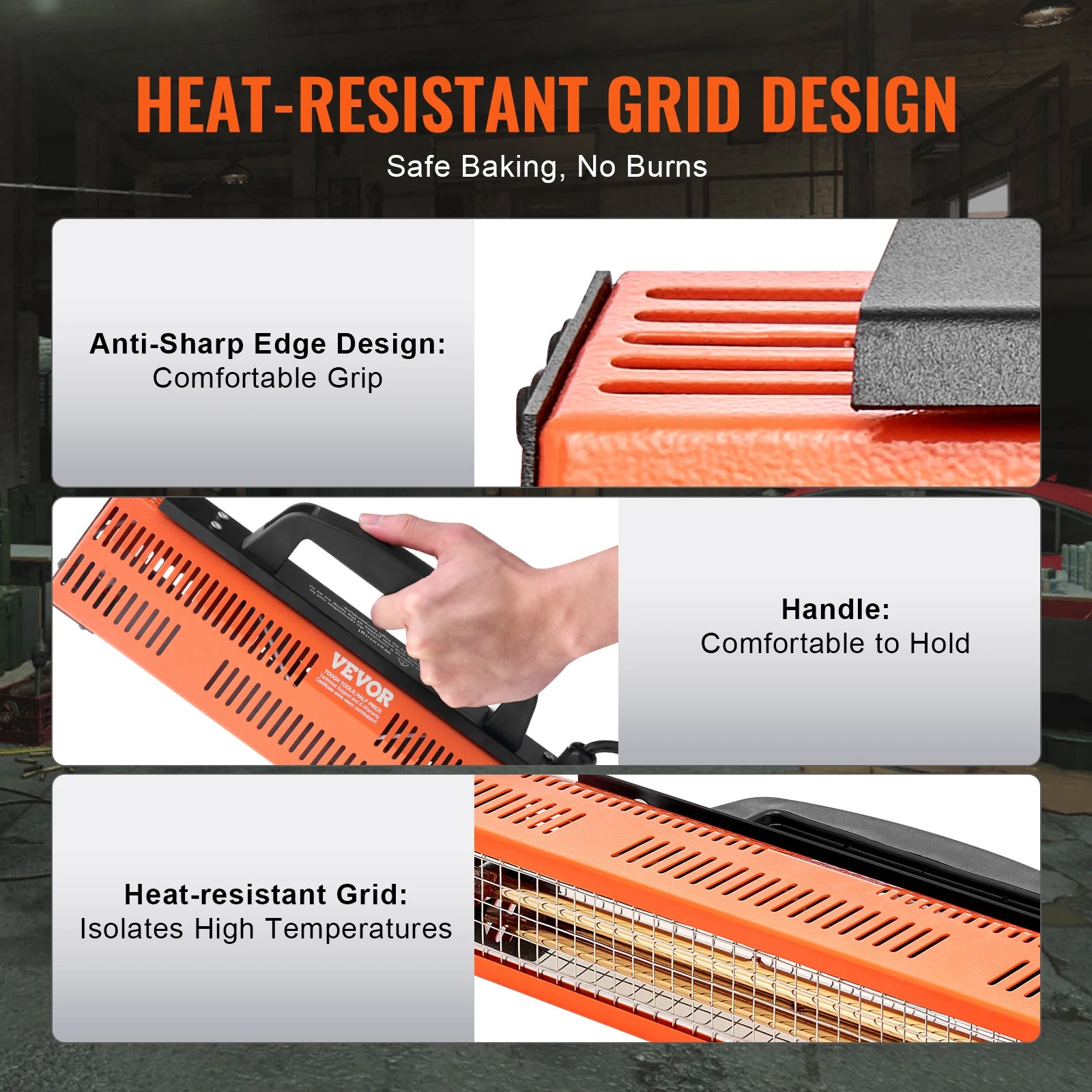 This baking infrared heater is crafted from high-quality stainless steel, aluminum, and carbon steel. It is finely made, robust, and secure..