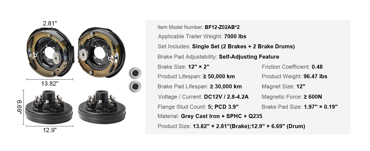 Self-Adjusting Electric Brake: Say goodbye to manual adjustments! Dive into the world of 12" x 2" electric trailer brake assemblies that self-adjust. It's not just smart; it's efficient and gives your trailer that smooth braking touch.