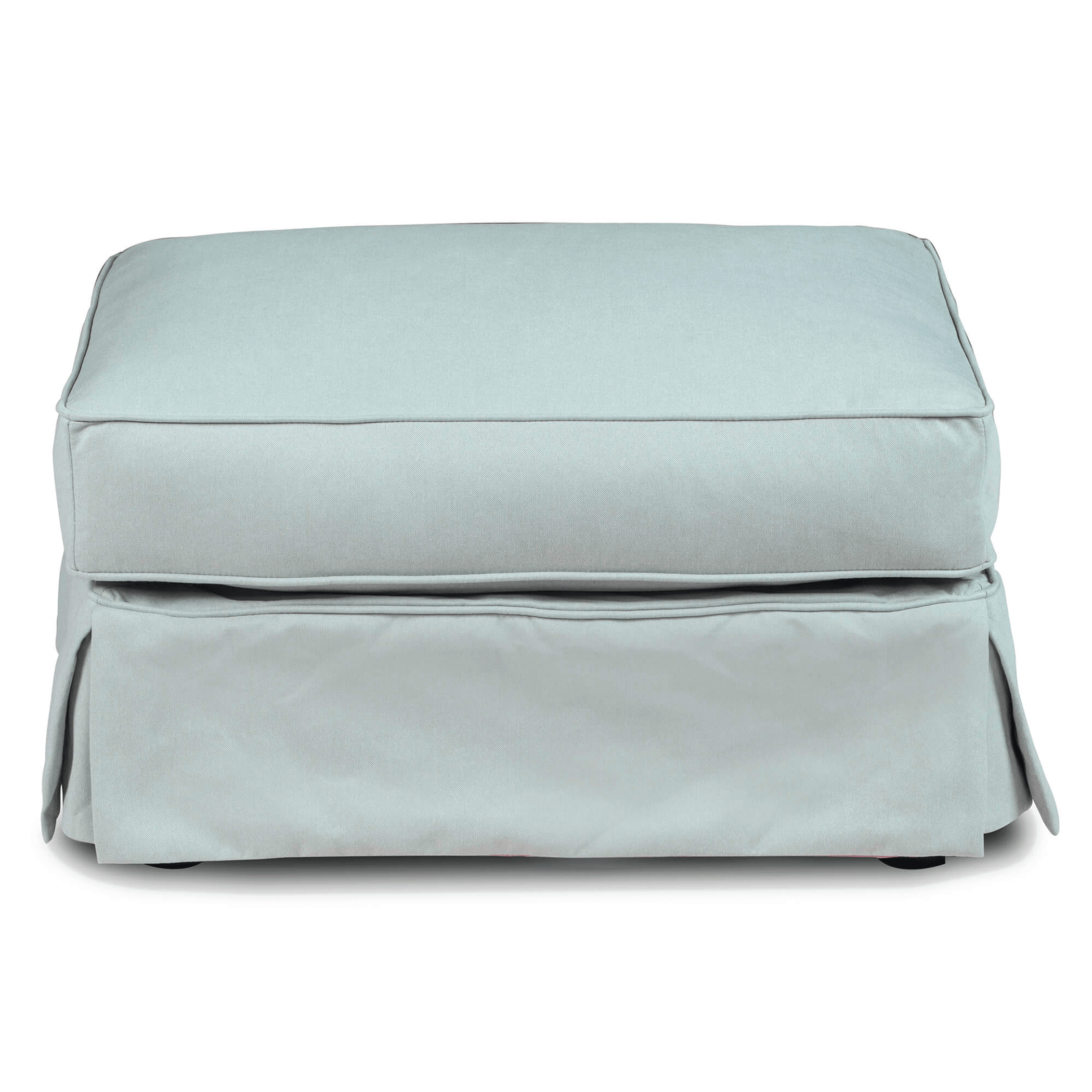 Introducing the Sunset Trading Horizon Slipcovered Ottoman in Ocean Blue, a seamless blend of elegance and practicality tailored for the modern home. This exquisite piece is designed to elevate your living space while providing the functionality needed for today’s lifestyle.