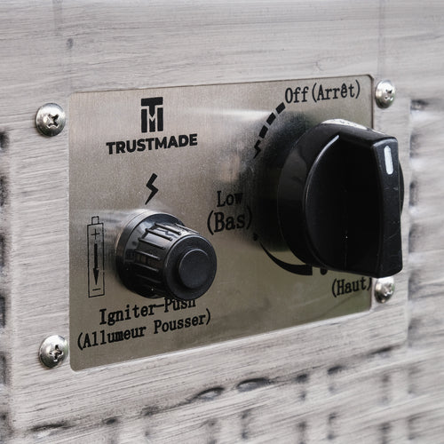 The fuel source is liquid propane provided by a 20lb propane cylinders sold separately. The product is intended for outdoor use only and should not be placed under any combusitable materials.