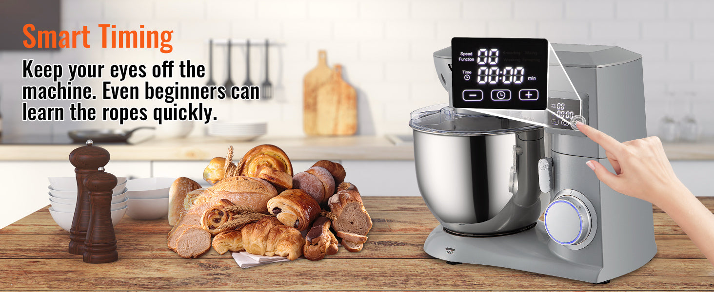 Comfortable User-Friendly Control Panel: Get ready to benefit from the intelligent LCD panel, operating this stand mixer couldn't be any easier. You can clearly perceive the precise remaining time from the screen, and set different durations according to different purposes. Thanks to the auto-stop function, you don't have to keep an eye on the machine all the time. Start a hassle-free baking journey even when your hands are occupied.
