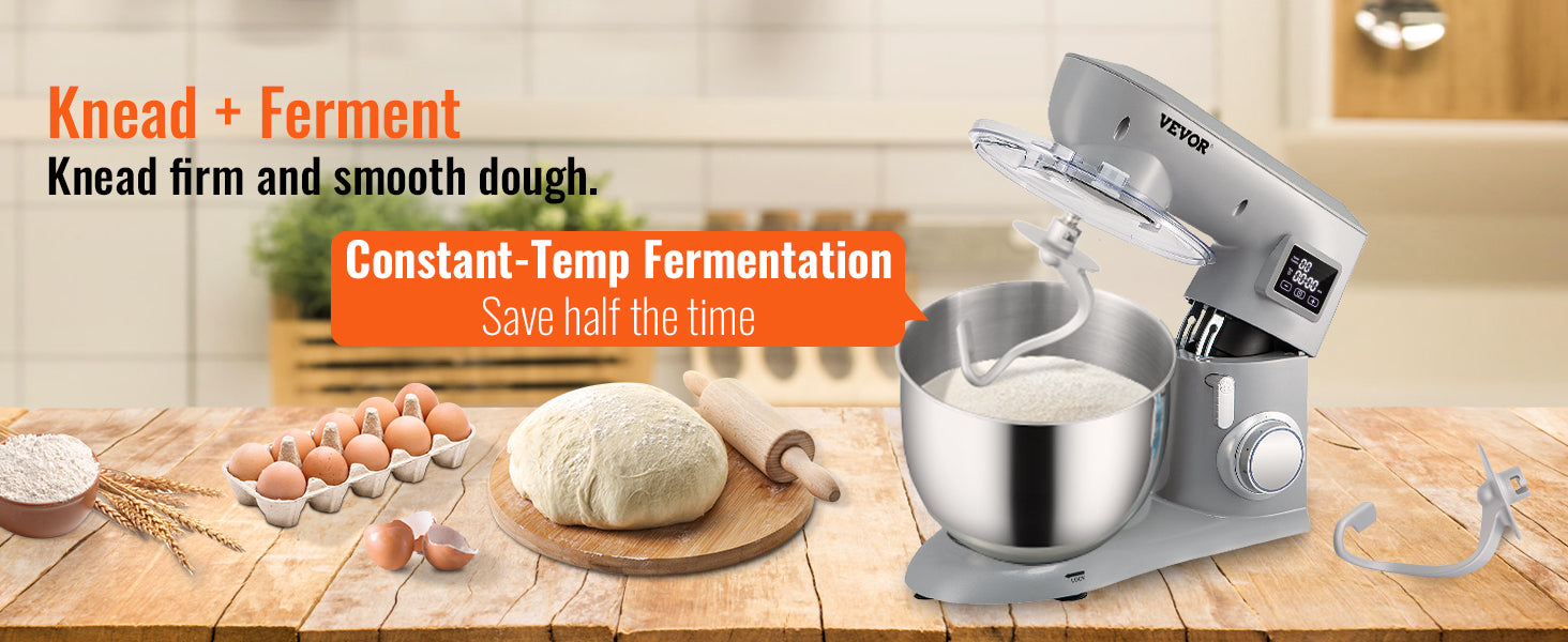 7.4 Qt Stainless Bowl with Fermentation: Designed with a built-in thermostatic heating element, the 7.4 Qt / 7 L stainless steel bowl can automatically heat up to the appropriate temperature for fermentation. Raw materials for 6 toasts can be kneaded at a time, saving half of your waiting time even in winter. It is convenient to change the attachments and pour in the ingredients thanks to the tilt-head design. Plus, the bowl is dishwasher-safe and comes with a splash-proof cover.