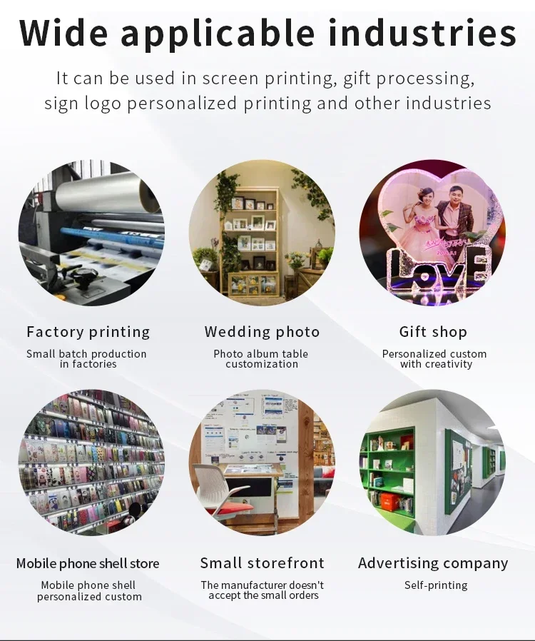 Versatile UsesThe A4UV printer is suitable for printing on a variety of materials, including plastics, metals, glass, ceramics, wood, and stone, making it suitable for a wide range of applications. |